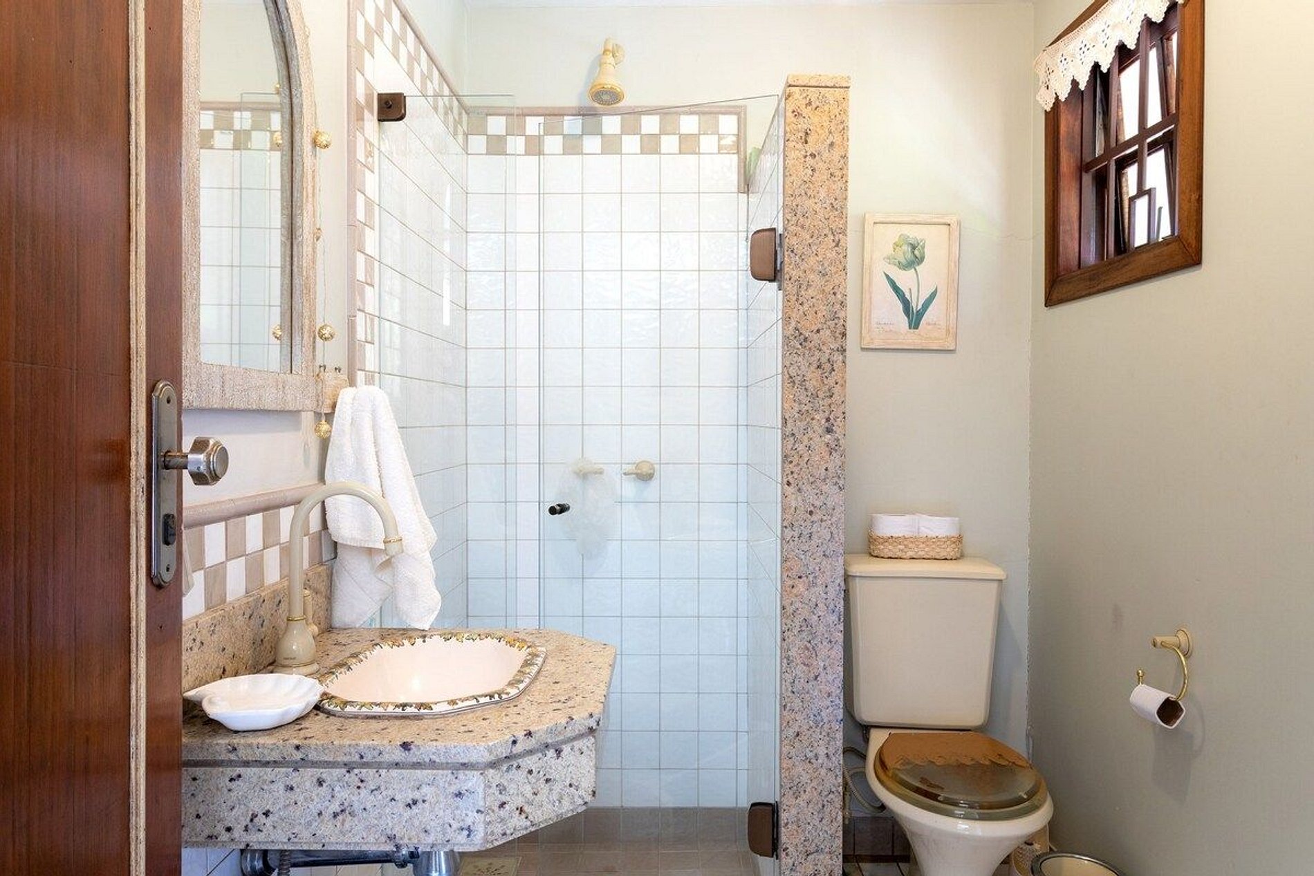 Casa Serrana, our house in Itaipava, Petrópolis, was built in the form of a chalet and decorated with a lot of charm, exploring all the atmosphere of a mountain house, cozy and with style. With 2 suites and 2 bedrooms integrated with a bathroom, all with hot and cold A/C, it is perfect for families. The heated pool and deck overlooking nature and mountains and the complete gourmet area and games room make days even more pleasant, allowing you to enjoy every moment in any weather in all seasons.