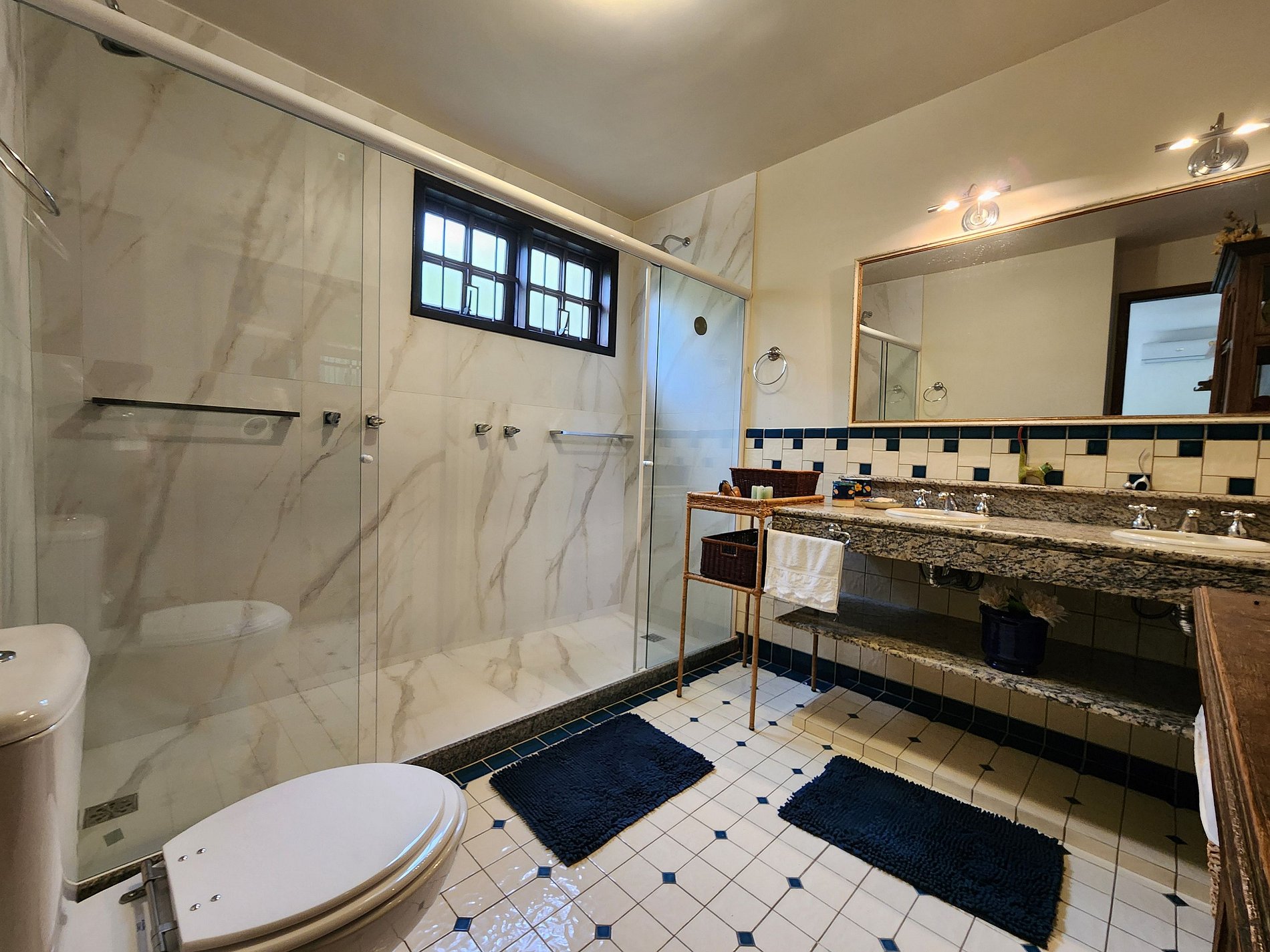 Casa Serrana, our house in Itaipava, Petrópolis, was built in the form of a chalet and decorated with a lot of charm, exploring all the atmosphere of a mountain house, cozy and with style. With 2 suites and 2 bedrooms integrated with a bathroom, all with hot and cold A/C, it is perfect for families. The heated pool and deck overlooking nature and mountains and the complete gourmet area and games room make days even more pleasant, allowing you to enjoy every moment in any weather in all seasons.