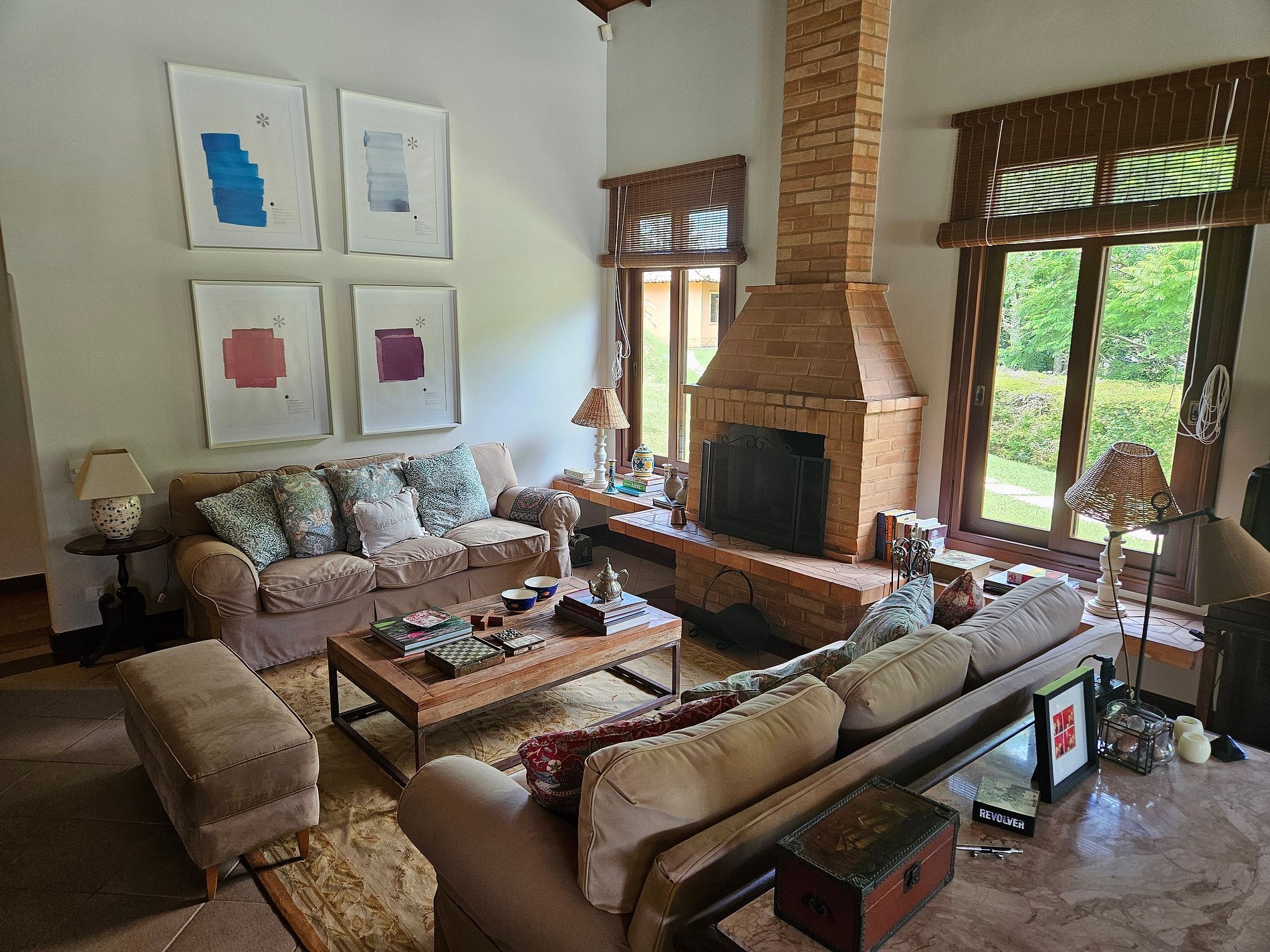 - Grande sala em vários ambientes com lareira e bar