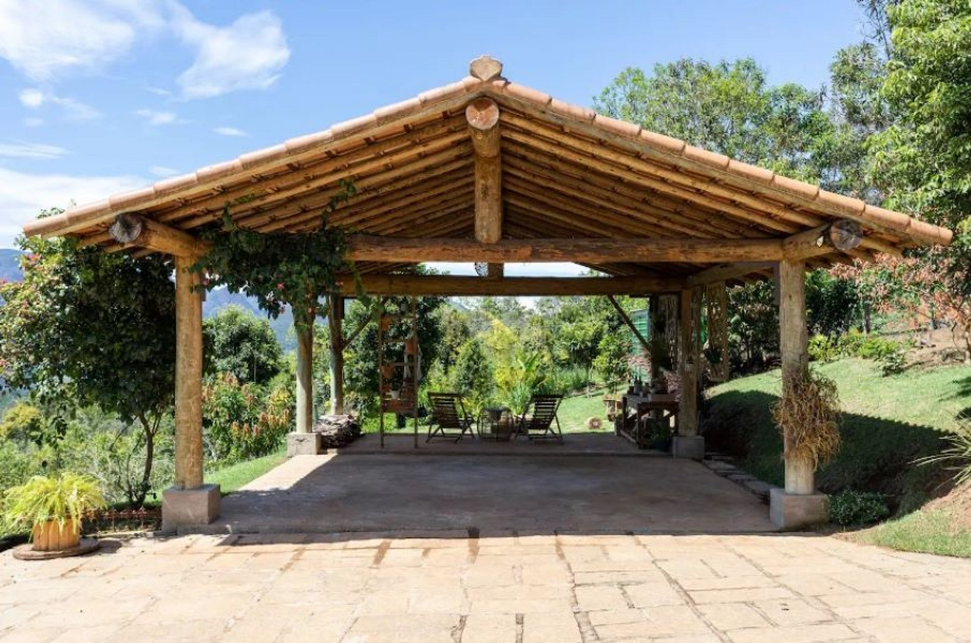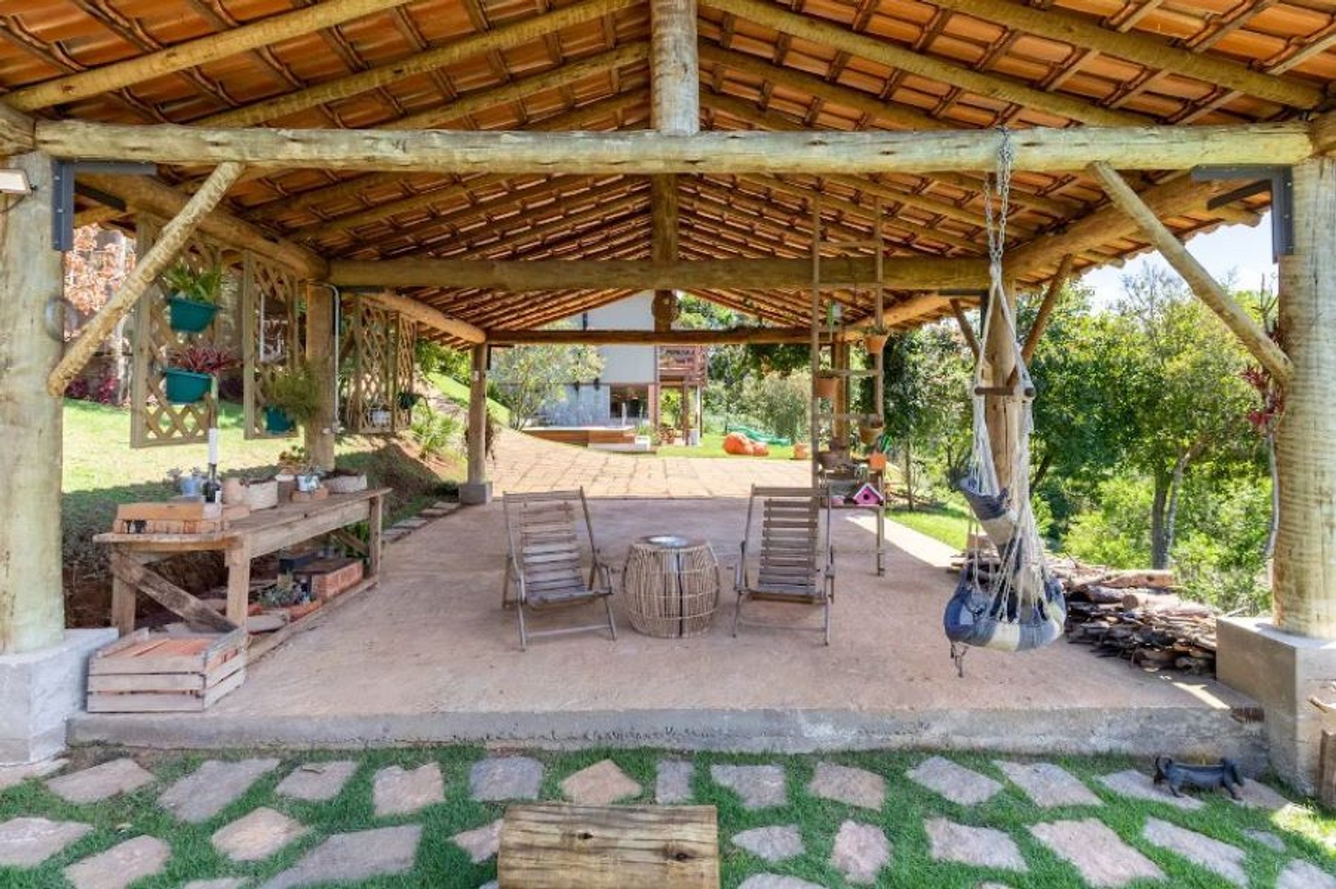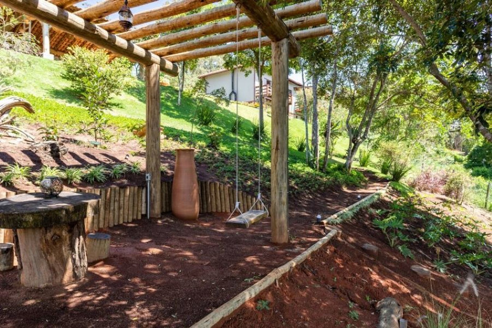 Casa muito boa. Bons lençóis, ótimo chuveiro, vista linda mesmo, cozinha completa, quartos com ar split quente e frio, sossego total. À noite o varal de luzes ao ar livre é muito agradável. E de dia a piscina e espaço de lazer são ótimos. A casa fica no topo de um morro e o acesso foi sossegado. A vista é espetacular.