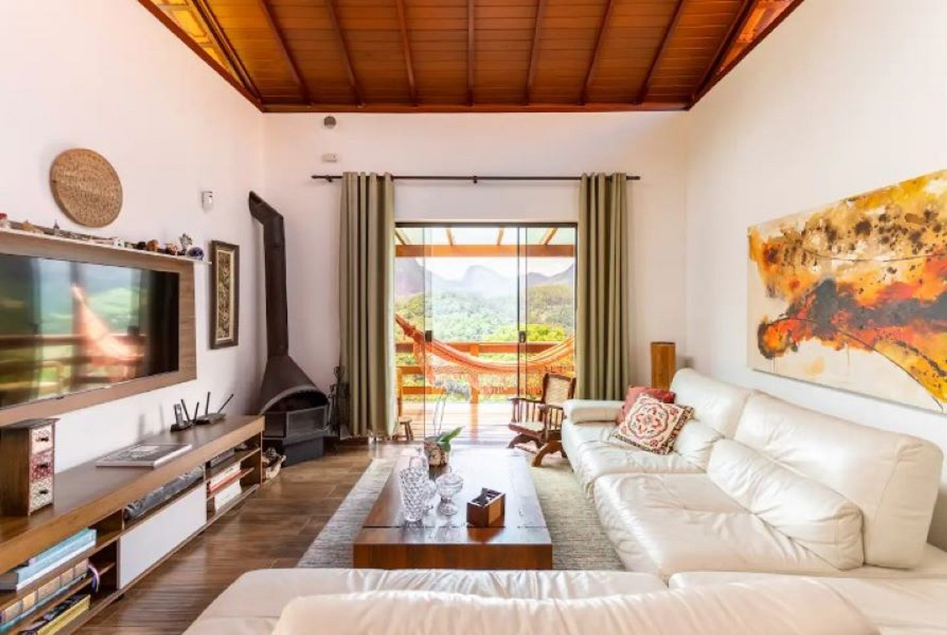 - Sala de estar com lareira para conforto em qualquer época do ano