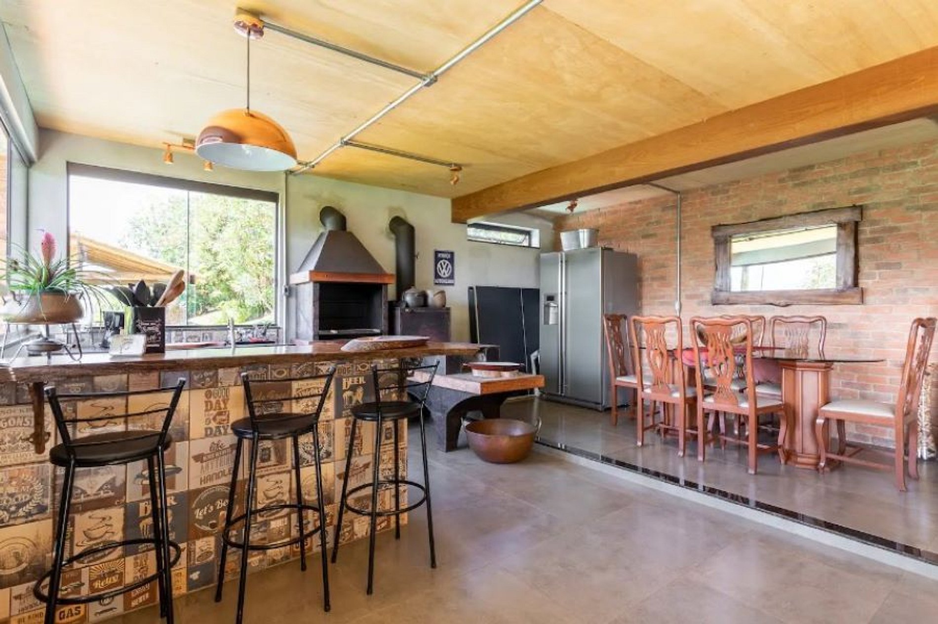 - Área gourmet completa com churrasqueira, fogão e forno à lenha