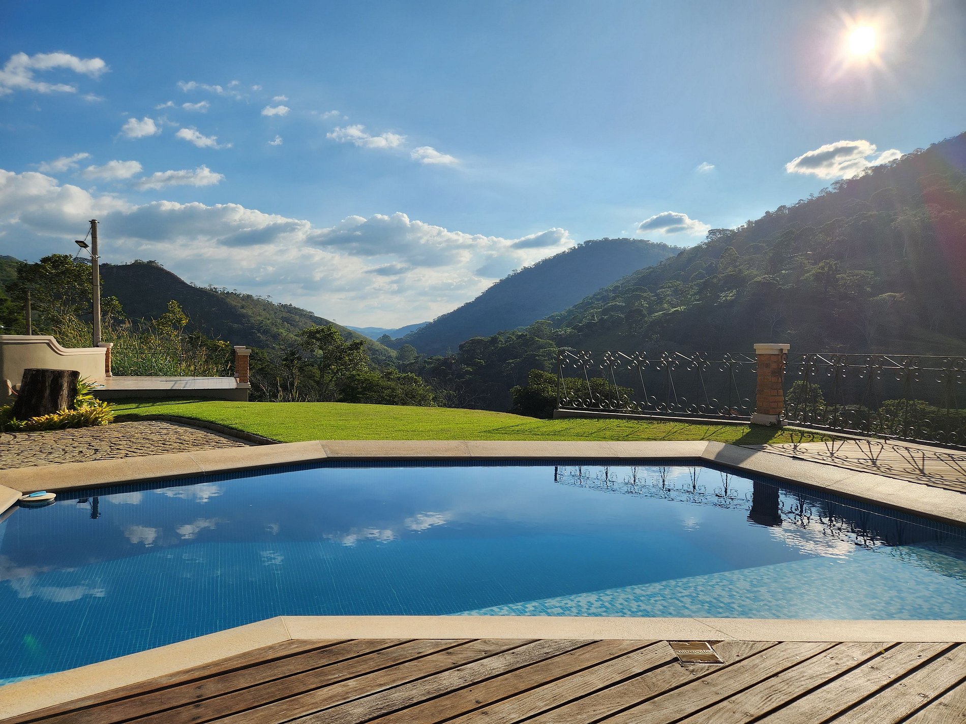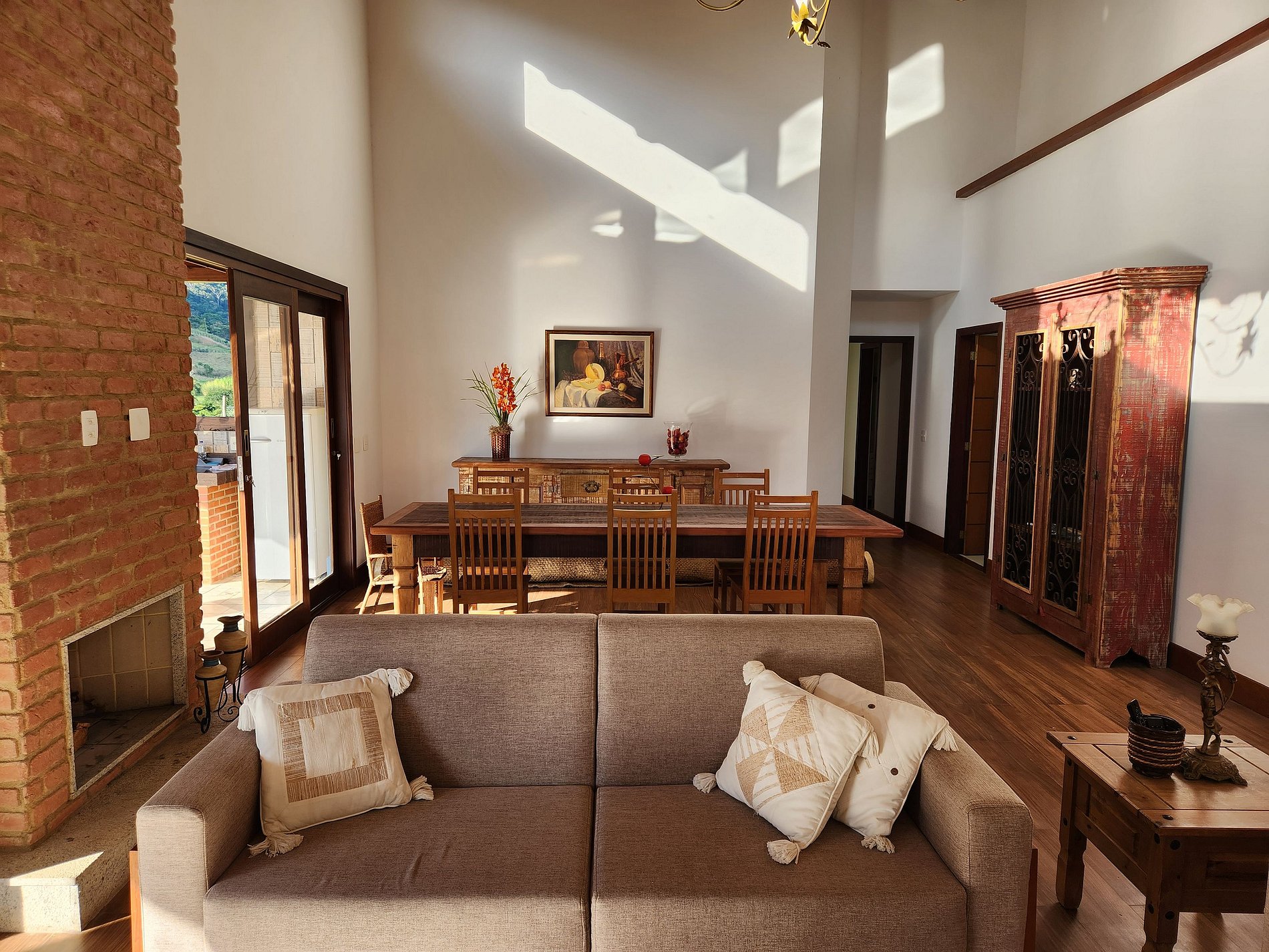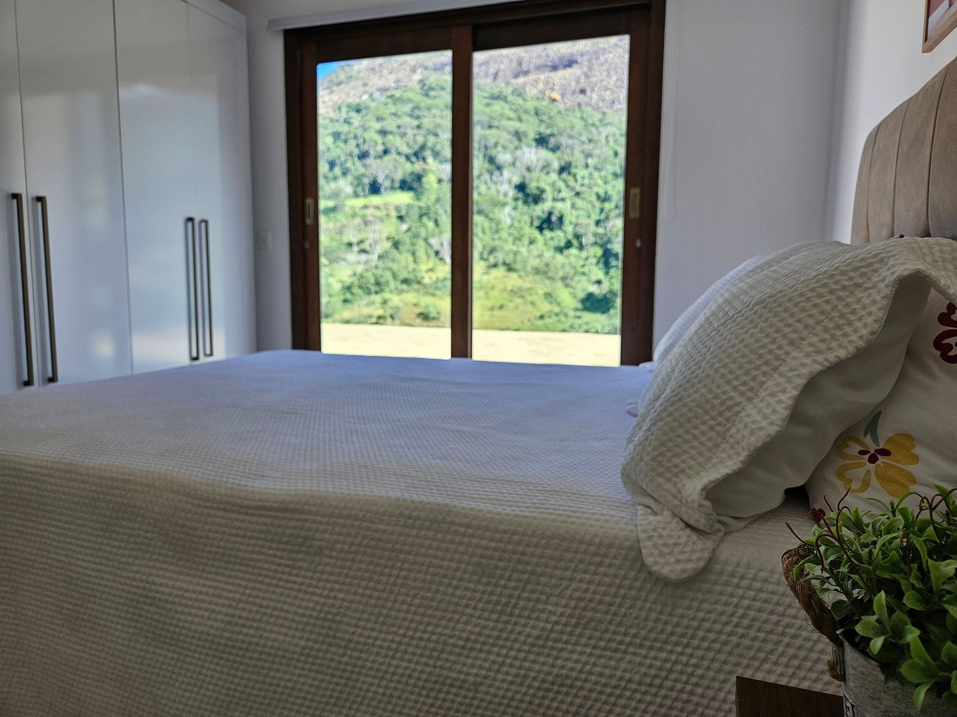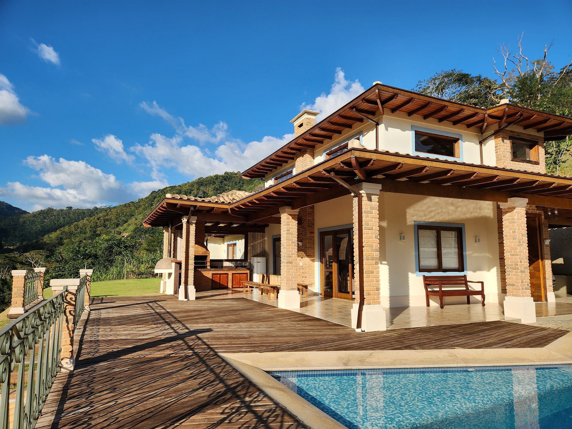 A casa é boa, tivemos momentos maravilhosos e valeu a pena. Mas é caro pro que oferece Prós: - A vista da casa é maravilhosa, deslumbrantes, por do sol mágico, silêncio e muita paz! - Ambiente agregador, deixando todos sempre reunidos da melhor forma - Casa nova e arejada - Vanessa (cozinheira) foi excelente, simpática e solicita - A comunicação com a empresa que administra a casa oi ótima sempre muito solícitos Contra: - Colchões são ruins mesmo (não é frescura) - Ambiente não é muito propício para crianças e bebês; chão da piscina extremamente escorregadio, ribanceira para todos os lados sem proteção, móveis com farpas, mesas com as pontas mal cortadas - Nos dias quentes sentimos falta um ventiladores de teto na sala e um ar condicionado nos quartos teria feito toda a diferença - A casa precisa melhorar com os móveis e utensílios, só tinha o básico. - A internet funciona, mas é muito instável e trava bastante - A piscina é bem menor que aparenta nas fotos, mas é bem agradável