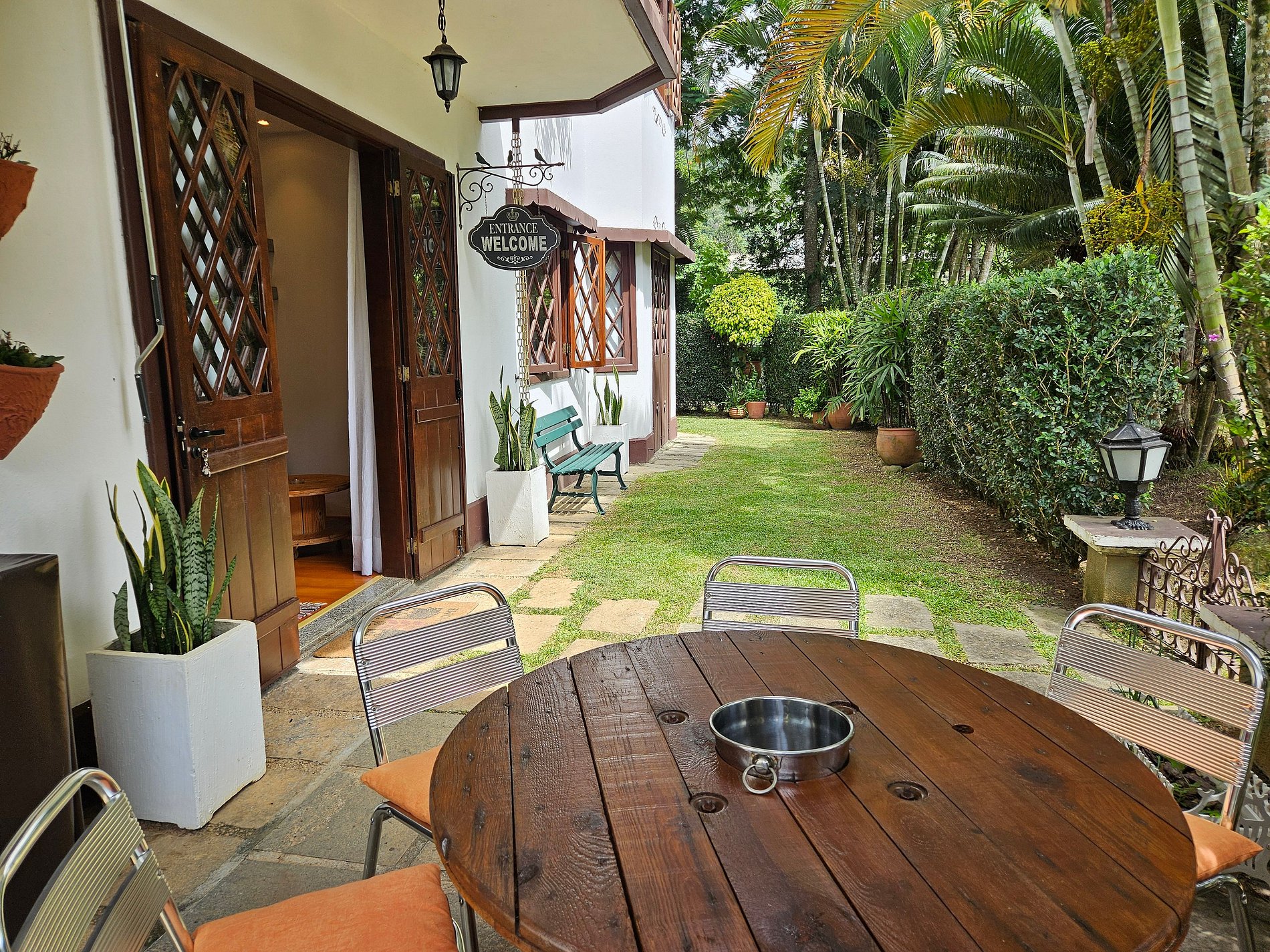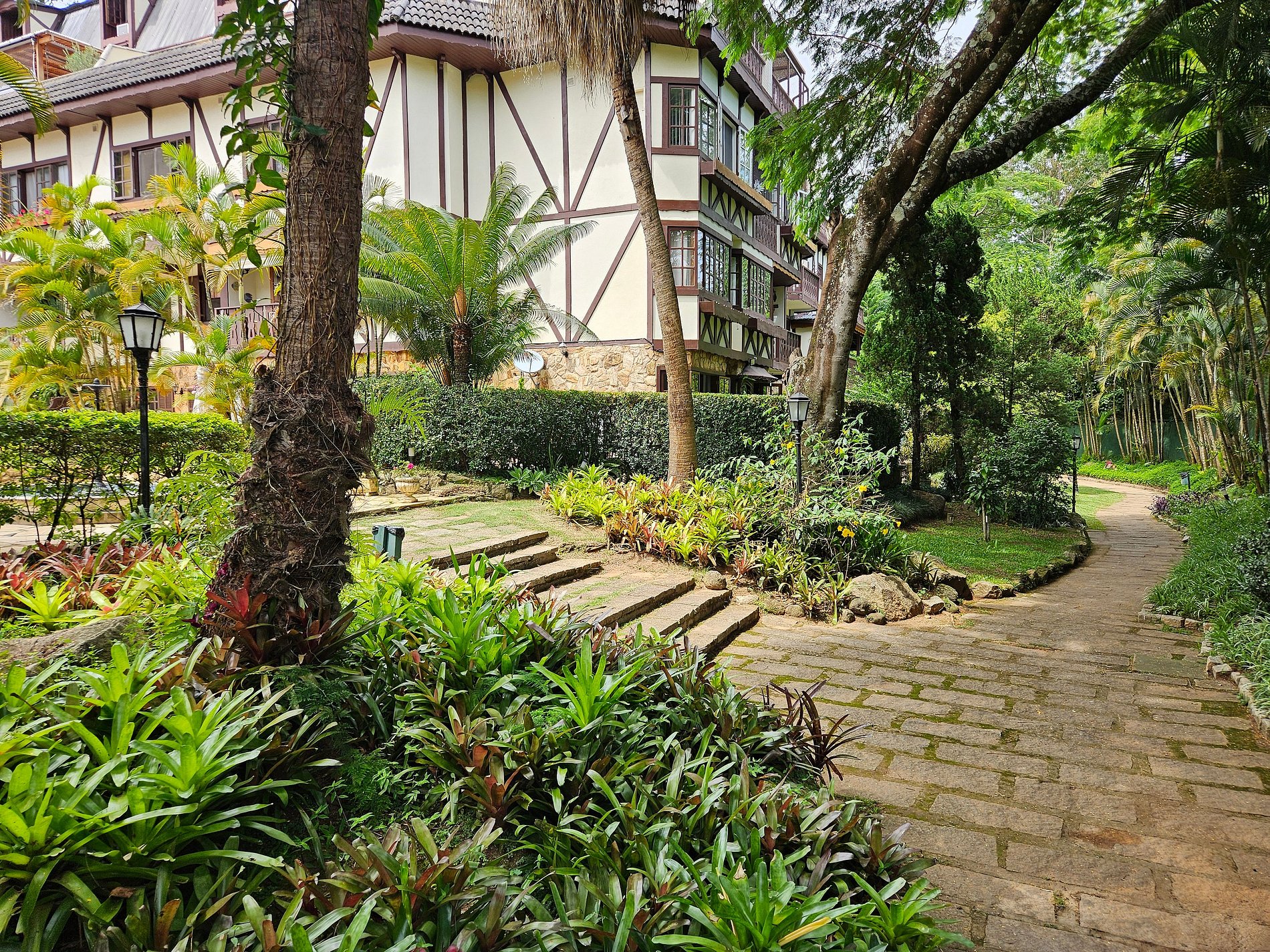 O local é muito bonito, limpo e muito bem localizado, perto do centro de Itaipava. É um garden charmoso, de esquina, em um condomínio lindo! Apenas um detalhe, com relação a ser pet friendly, que aqui deixo uma sugestão. Como o muro do garden é baixo e com cerca viva, os doguinhos podem passar facilmente pelas plantas. Então, sugerimos colocar uma rede de proteção ou treliça pela parte de dentro.