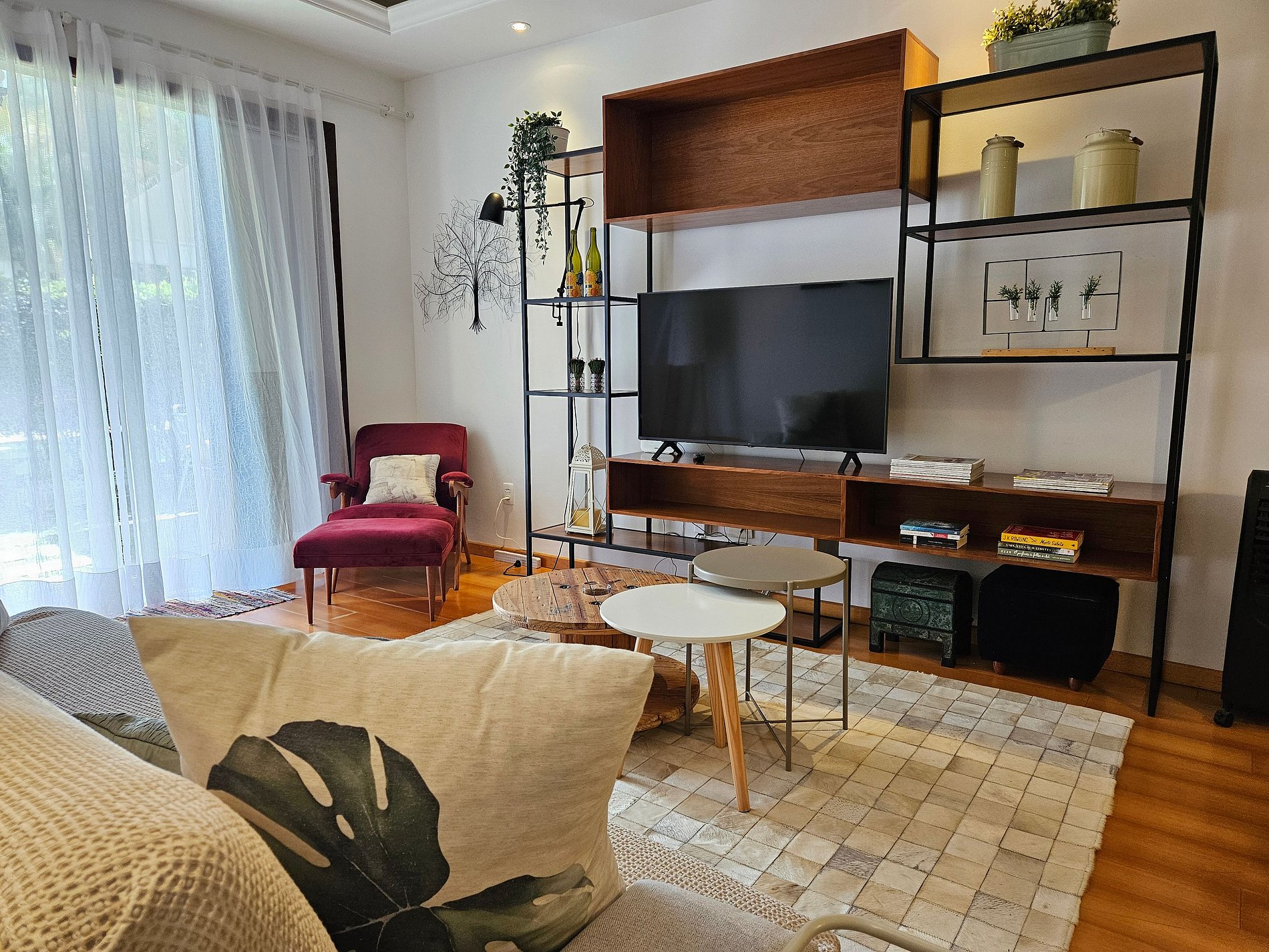 In Itaipava, anapartment with a homely feel. The Apartment of the Lake is on the ground floor and has an exclusive garden with access to the leisure area of condo, with a heated pool, sports courts, sauna and much more. Carefully furnished, it has 2 bedrooms with hot and cold air conditioning (a suite and a exclusive bathroom for the second bedroom), living and dining room, kitchen and service area. We have complete kitchen utensils and top-of-the-line bed linen and towels.