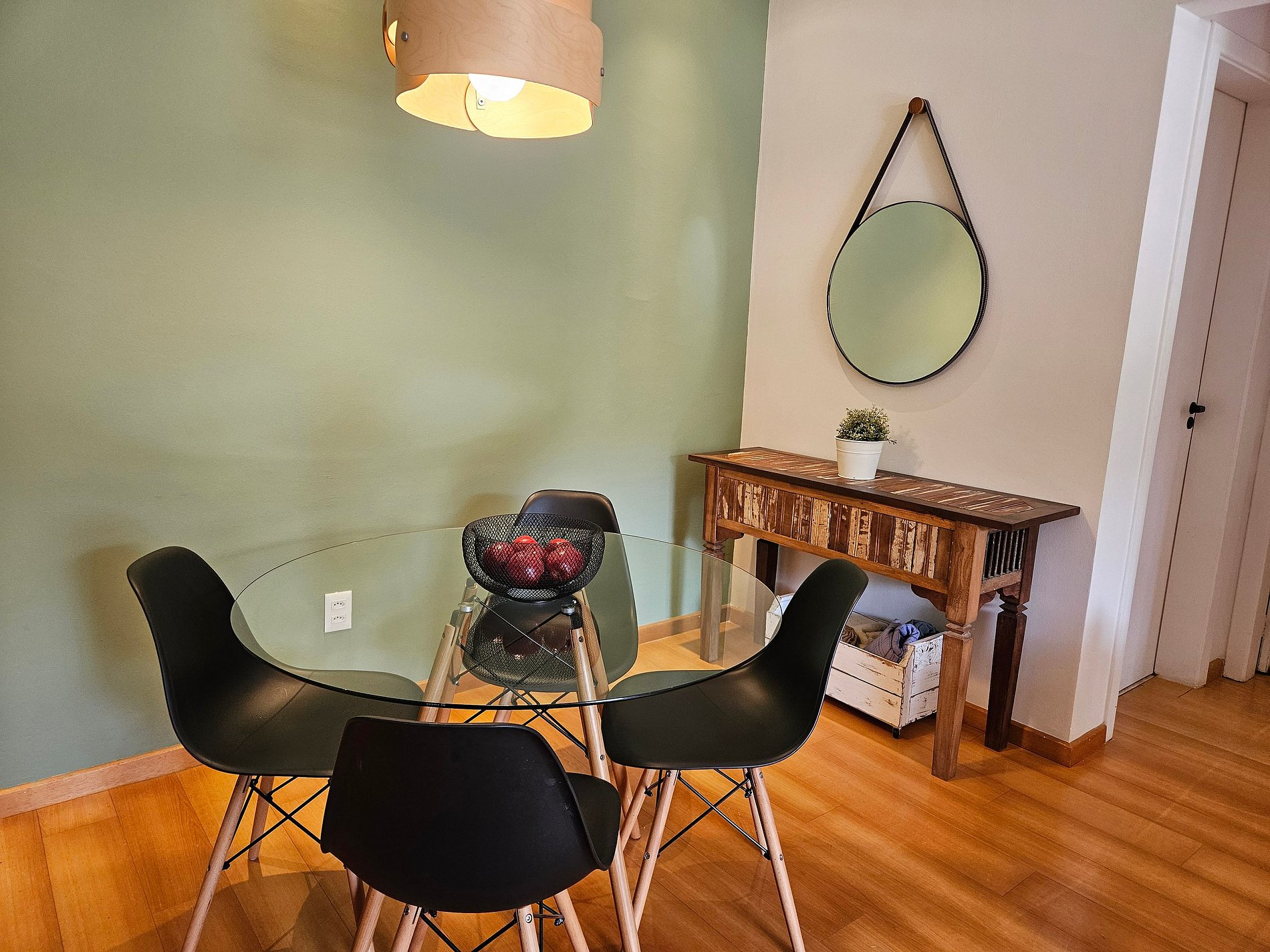 Apartamento lindo! Super bem decorado e novinho. Tudo muito limpo! Tem um jardinzinho privativo super agradável. Cozinha equipada com tudo, até conjunto de fondue e taças de vinho. Camas muito confortáveis! Condomínio ótimo! Com piscina e sauna. Super seguro e tranquilo!