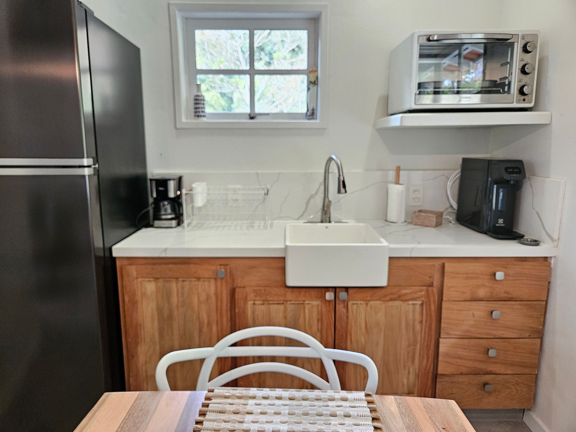 - Quarto aconchegante com cama queen e ar condicionado quente e frio, aquecedor adicional e purificador de ar.