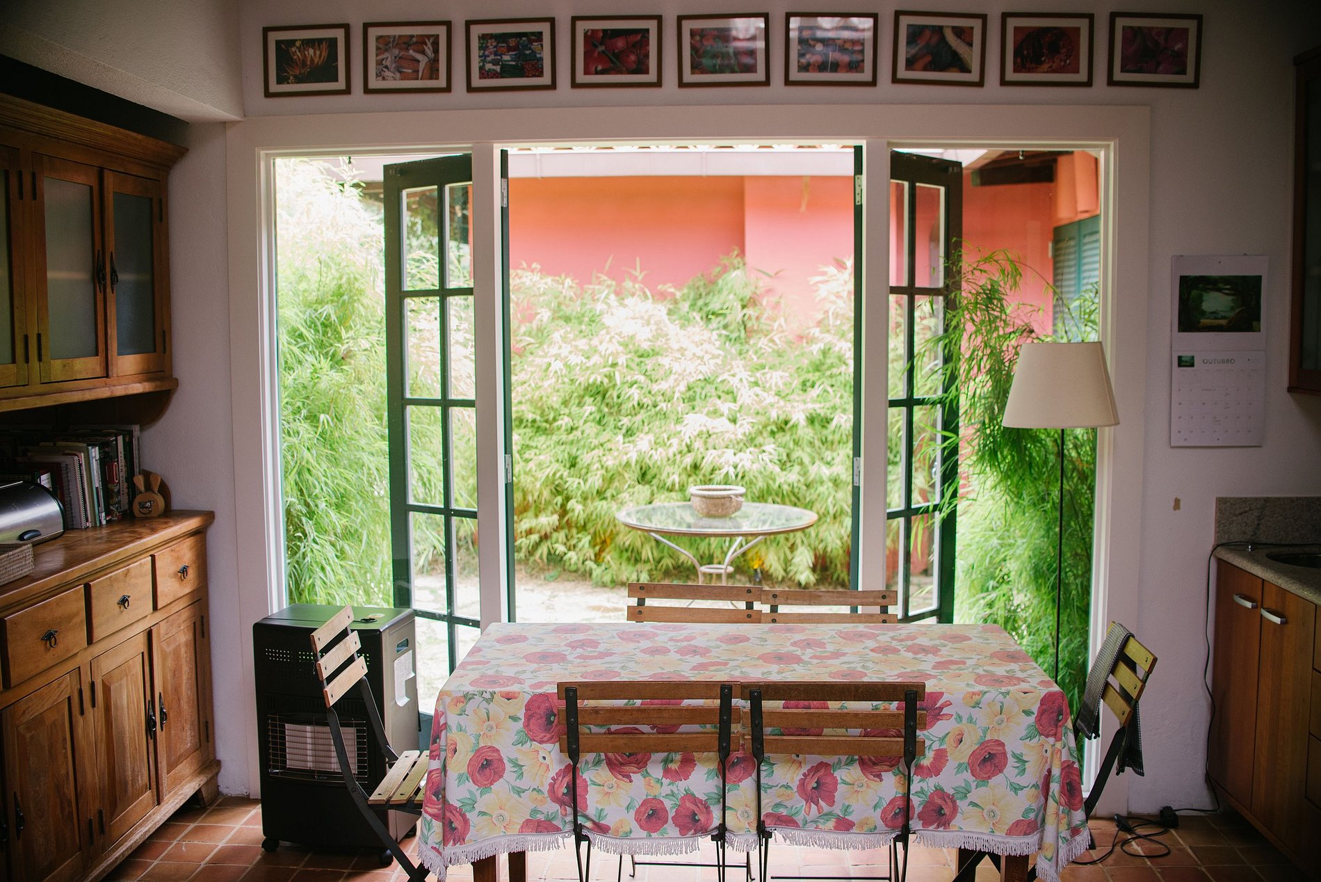 Chegar até à casa, abrir a porta e descobrir a incrível sala de estar com uma vista literalmente de tirar o fôlego é uma sensação única. A varanda é tão gostosa e aconchegante que não dá vontade de sair dali. A sala de jantar é ampla e tem uma grande janela para aproveitar a vista. A cozinha é completíssima, com geladeiras, freezer, adega climatizada e todos os utensílios, mas o charme dela é a mesa para café da manhã informal junto a um jardim reservado.