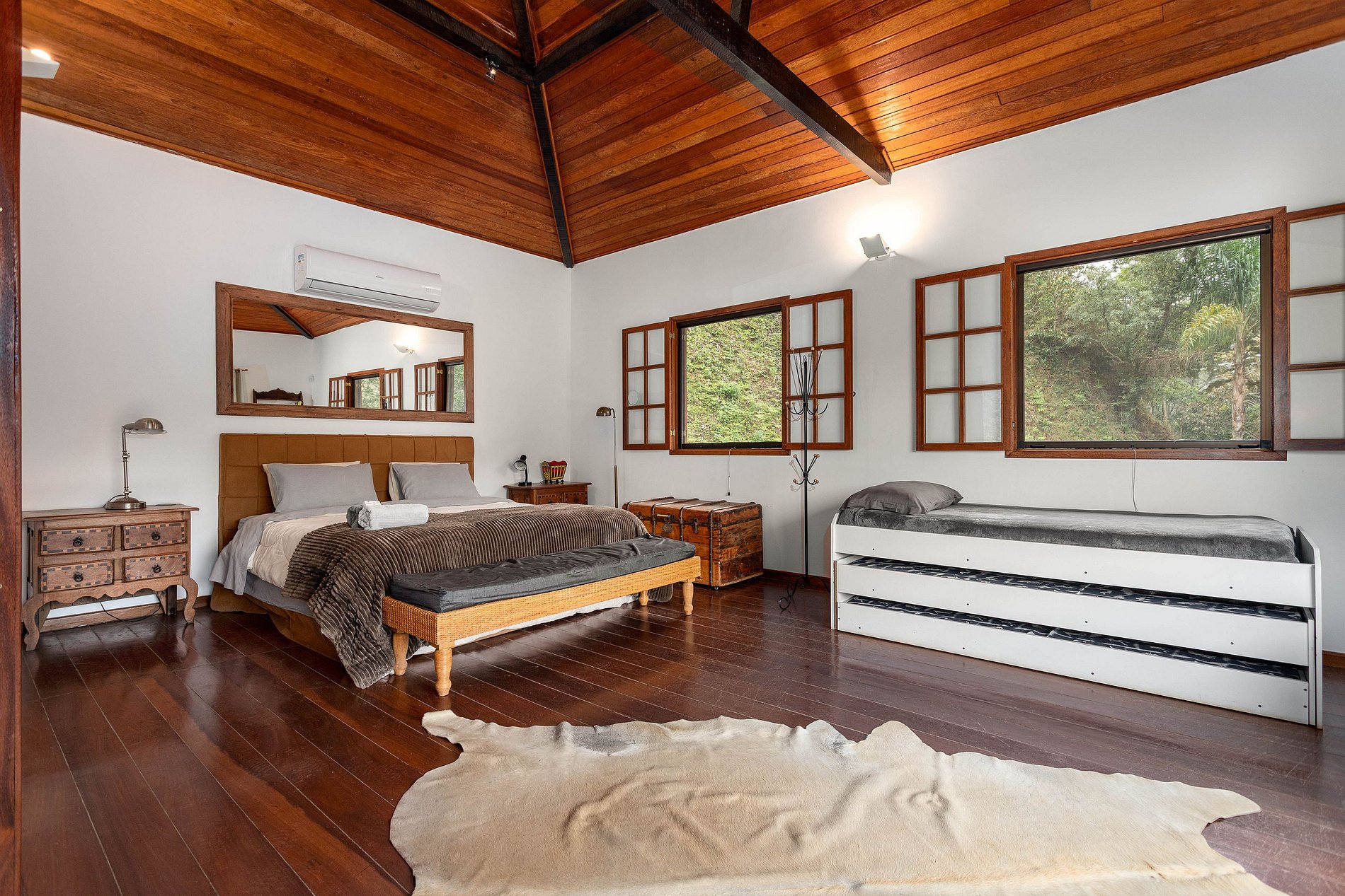 • Acomodações confortáveis – 4 quartos na casa principal (sendo 3 suítes) + chalé anexo com suíte privativa**