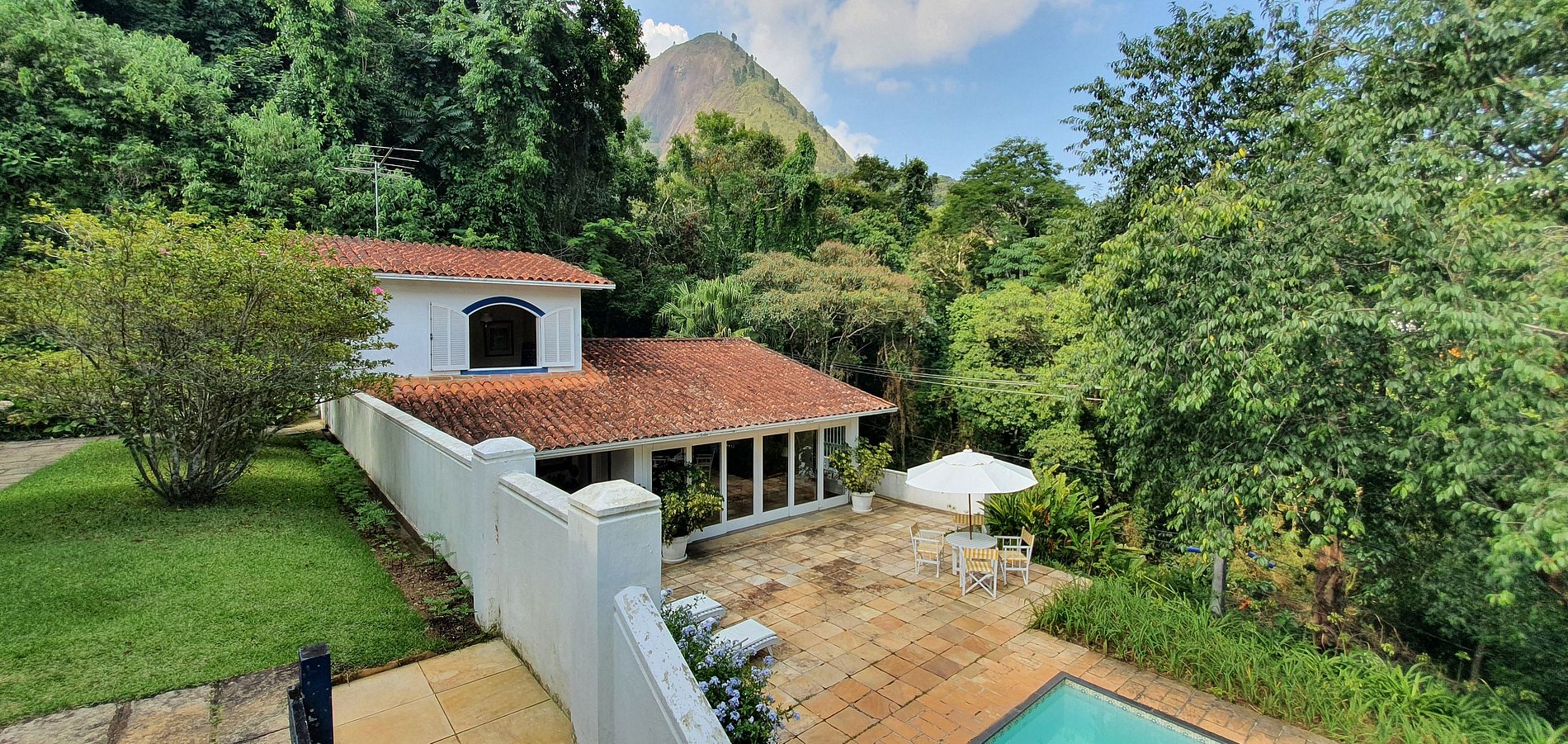 Uma linda casa em condomínio em Araras, a apenas 3 km do centrinho. Aos pés da Maria Comprida, icônica montanha da região, em meio a muito verde.