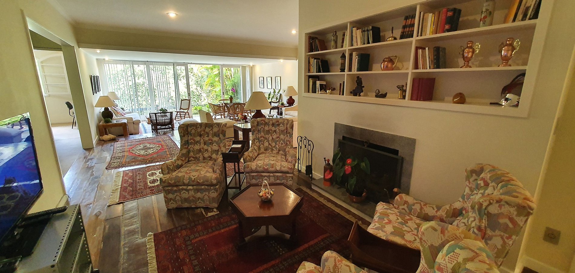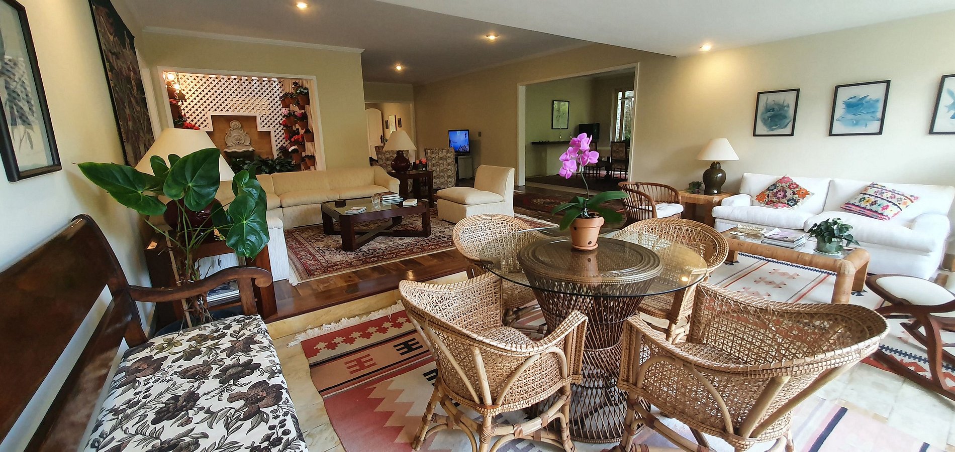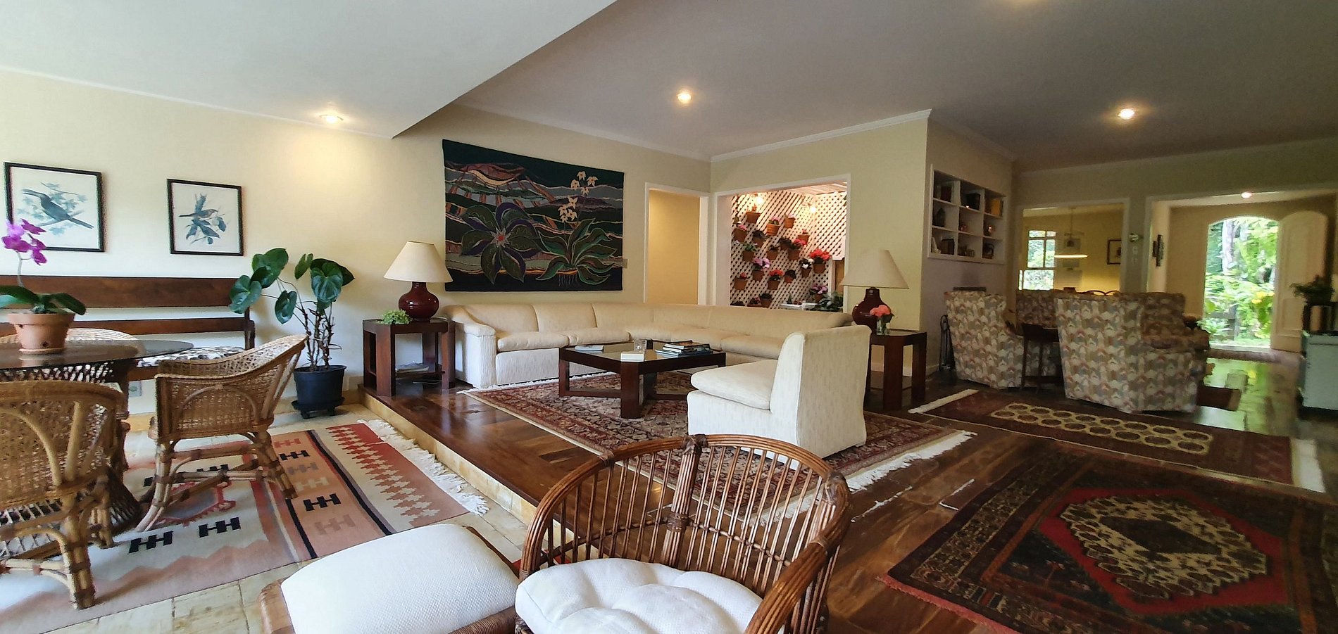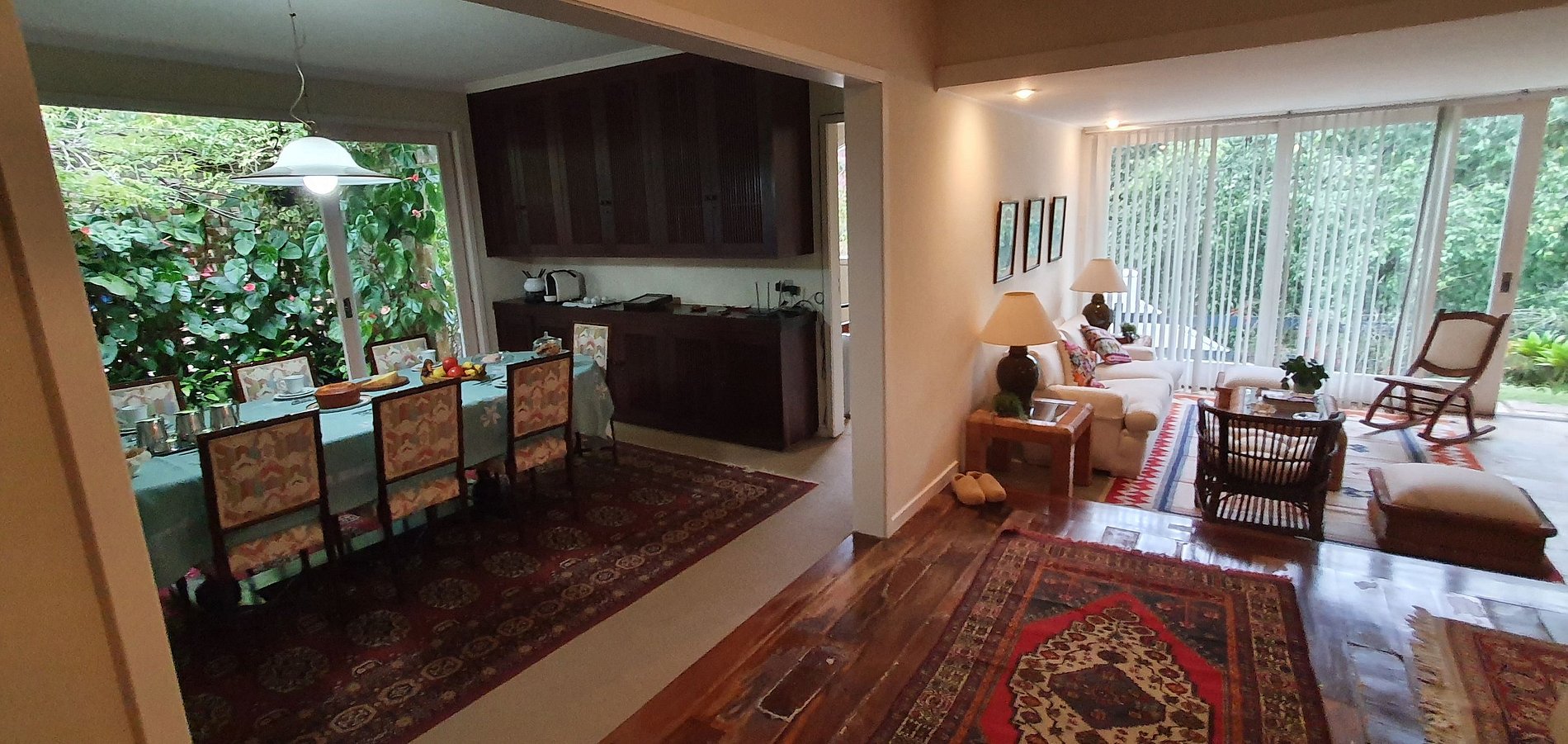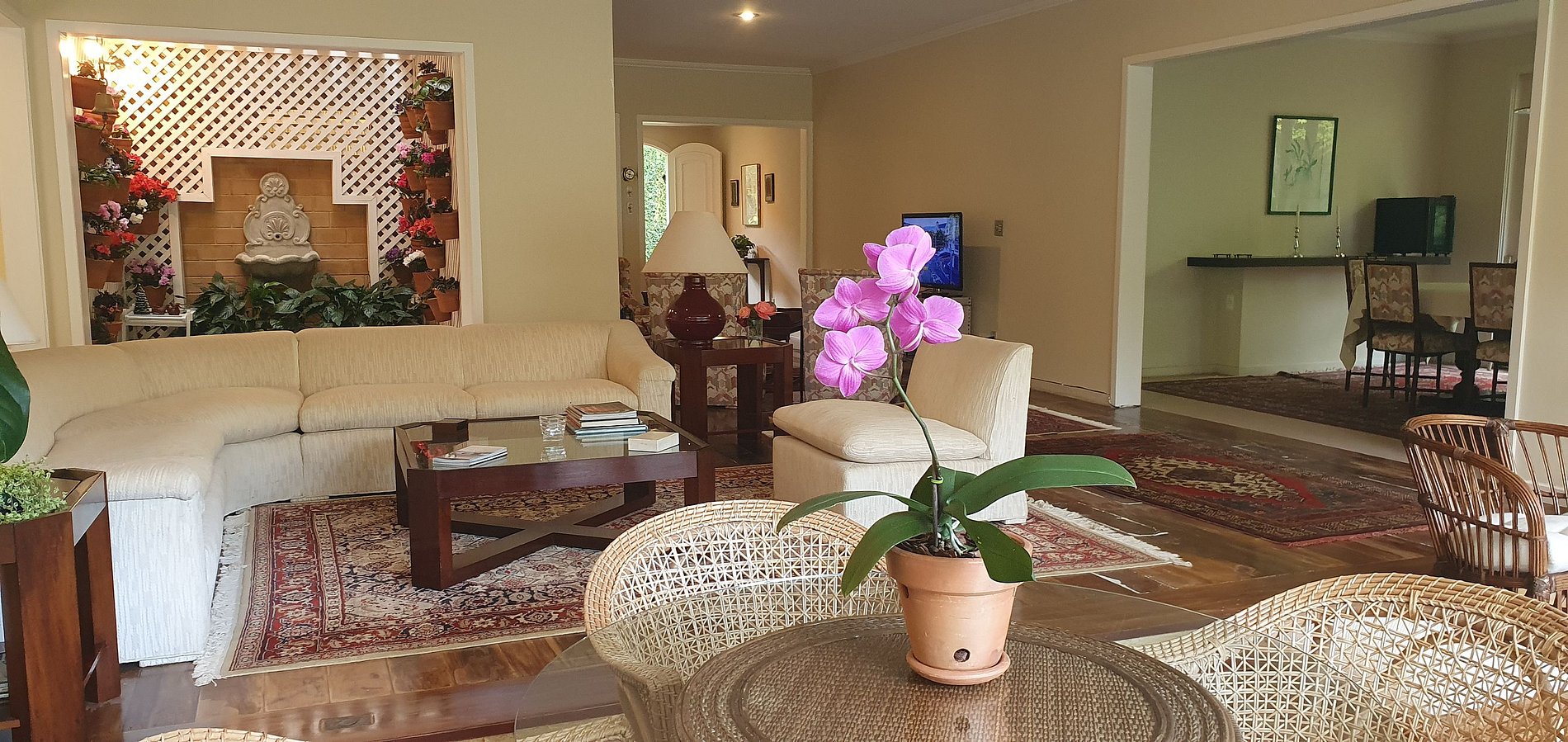 Casa principal com 4 quartos, escritório, sala de estar em vários ambientes, sala de jantar, cozinha, dependências, lavanderia, área externa coberta. Garagem para 2 carros e casa de caseiro. Anexo com uma suíte externa.