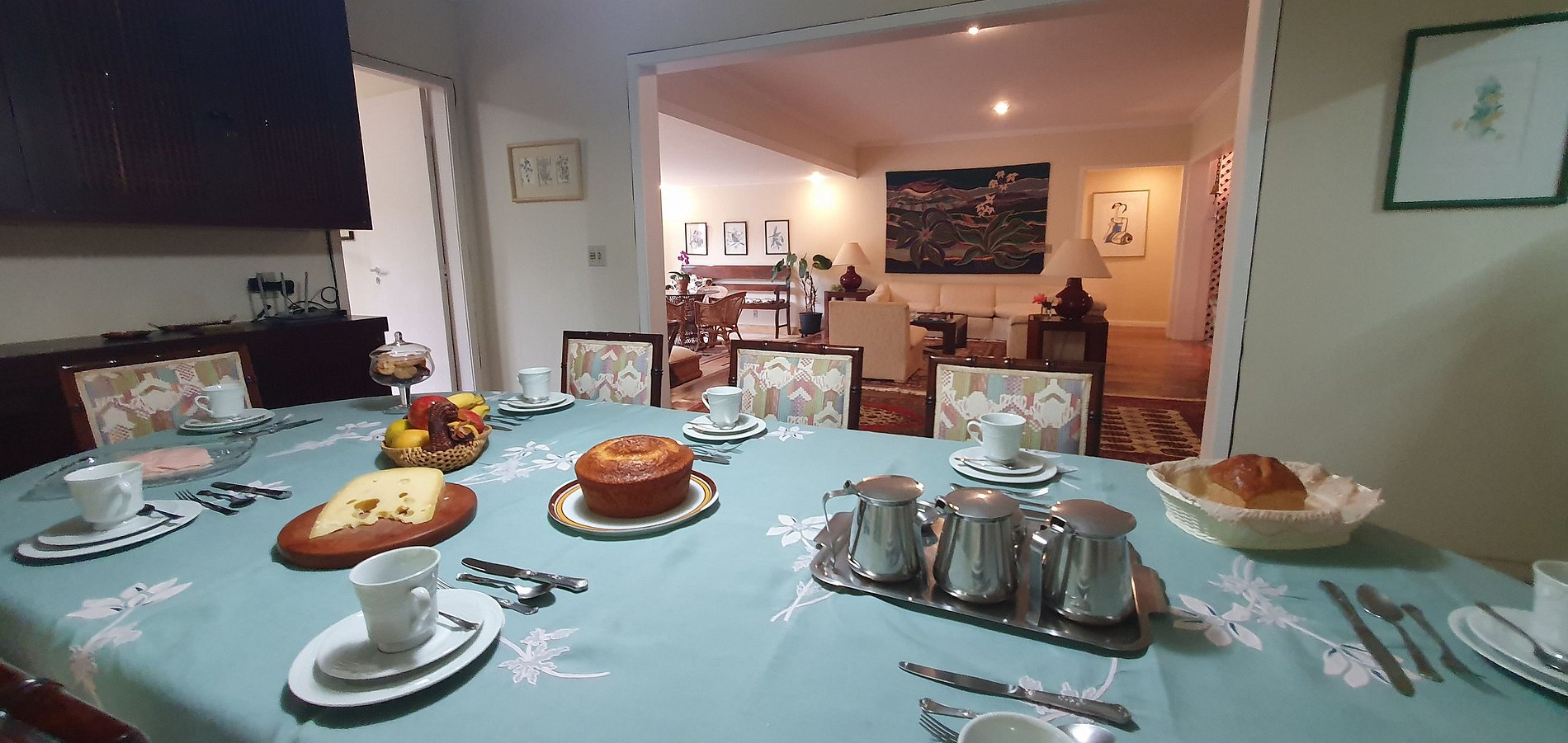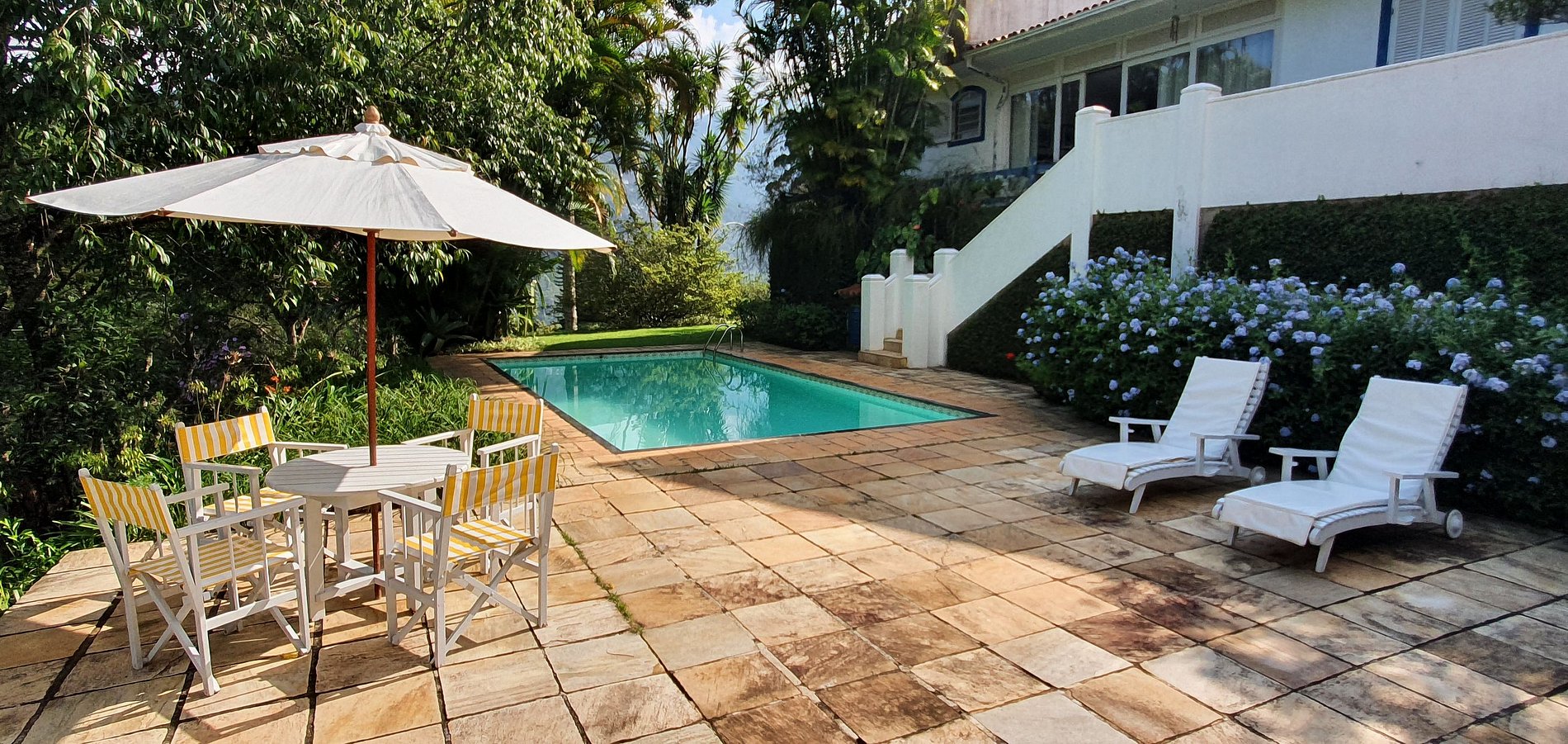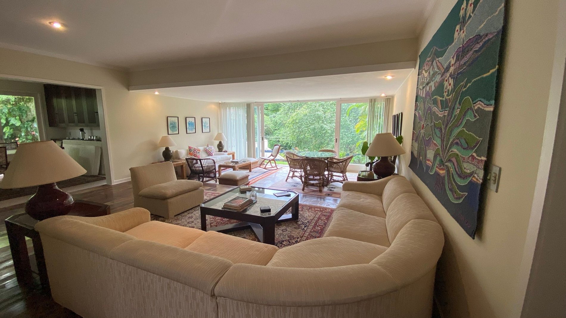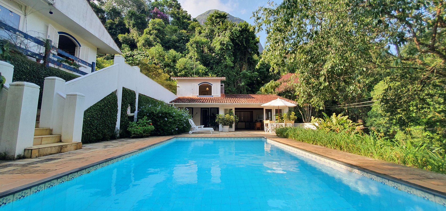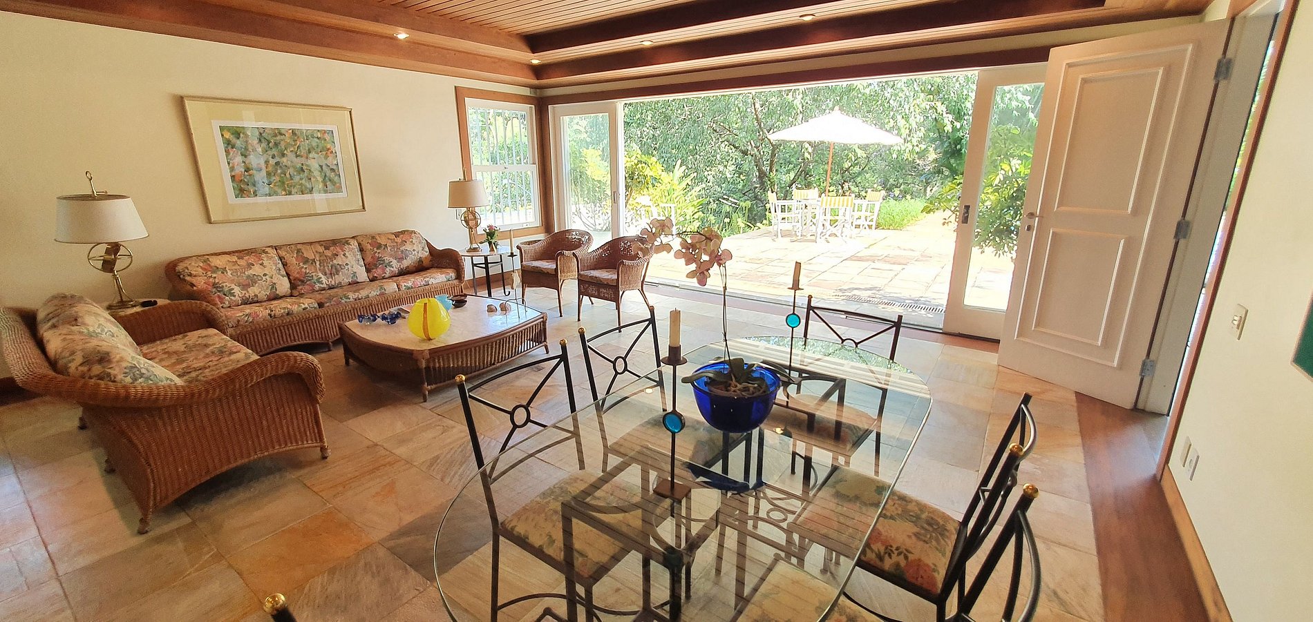 Casa principal com 4 quartos, escritório, sala de estar em vários ambientes, sala de jantar, cozinha, dependências, lavanderia, área externa coberta. Garagem para 2 carros e casa de caseiro. Anexo com uma suíte externa.
