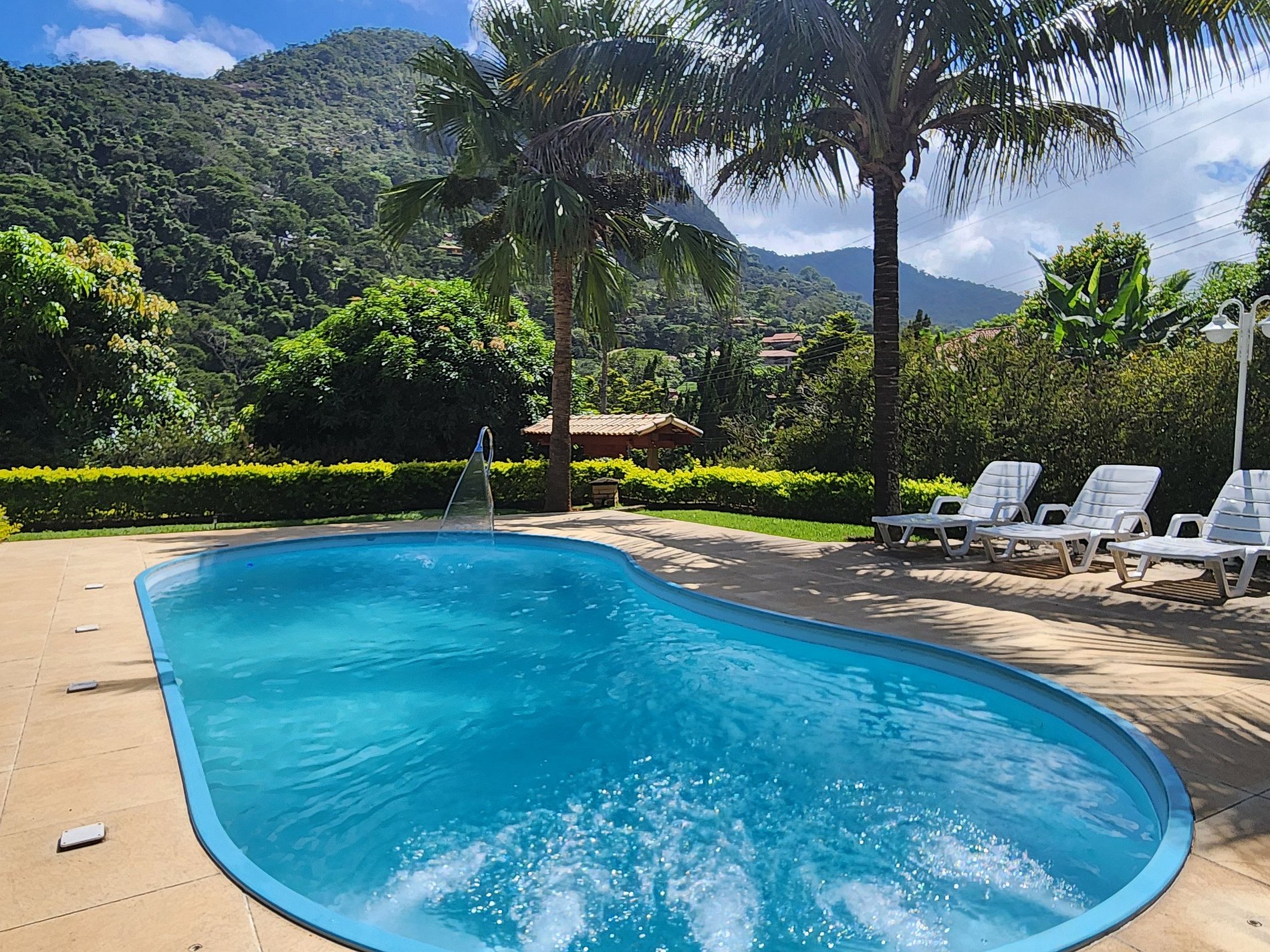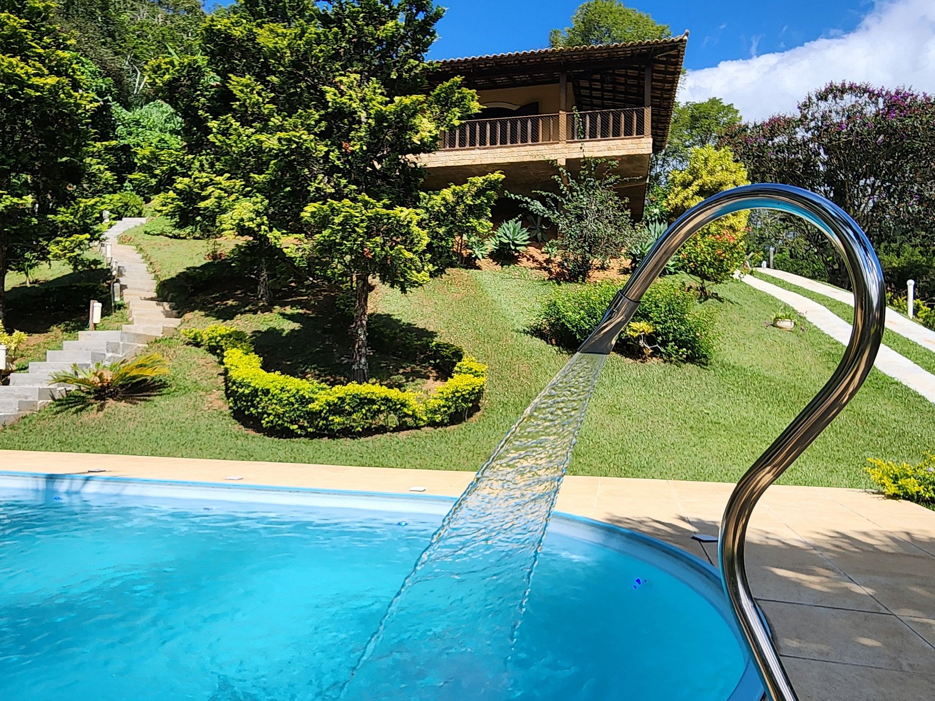 • Piscina com jatos de hidro, cascata e iluminação noturna