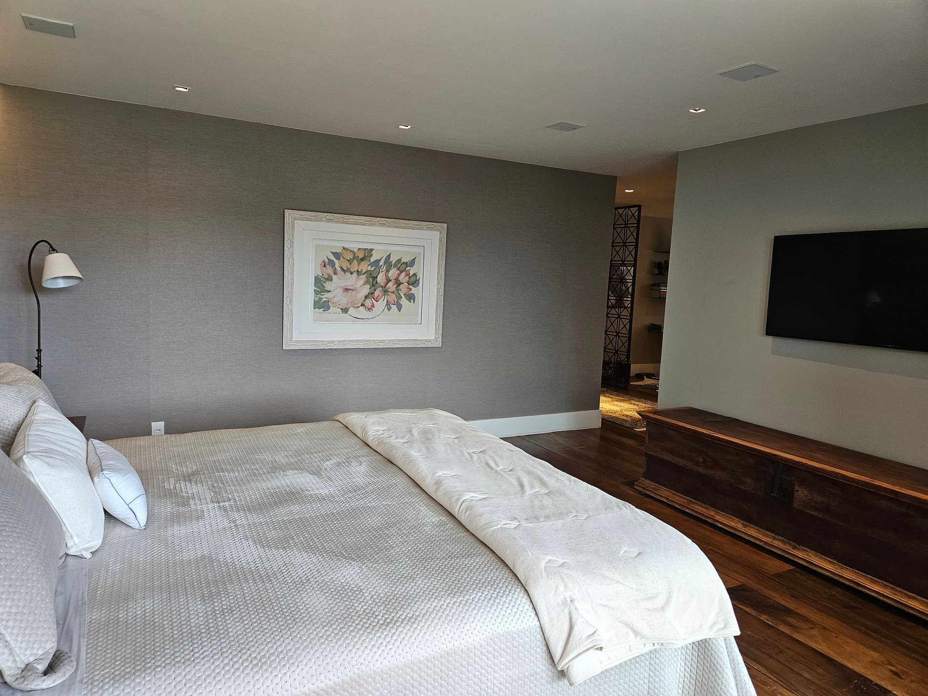 Com 4 suítes espaçosas (King, Queen e opção para famílias), a casa acomoda confortavelmente até 10 pessoas. A área de lazer é completa: piscina aquecida* com borda infinita e vista para as montanhas, hidromassagem aquecida*, sauna privativa e uma academia equipada para manter o bem-estar durante a estadia.