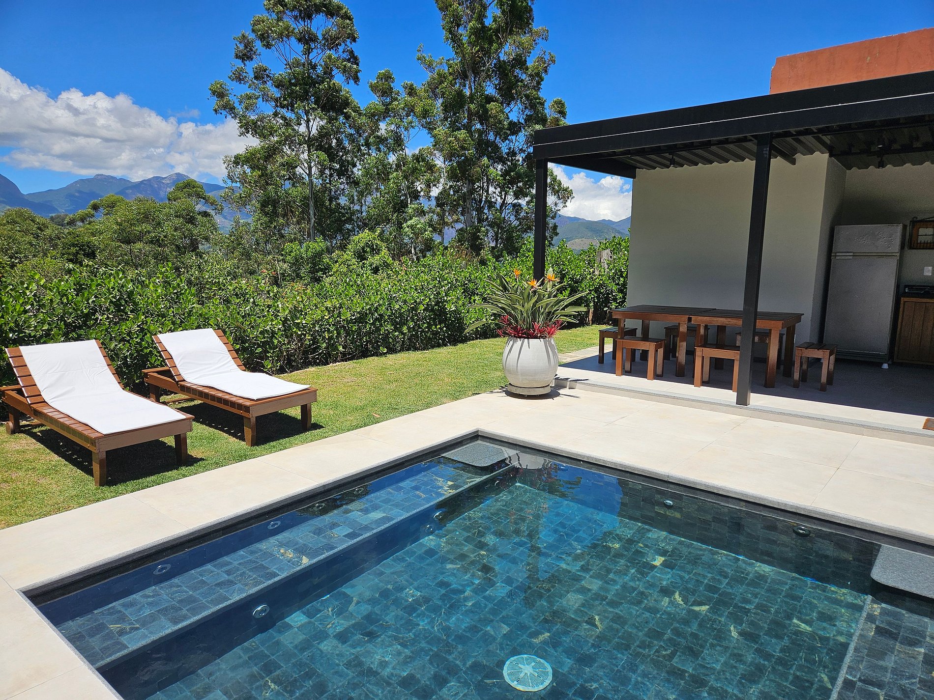 Os hóspedes tem acesso exclusivo a toda a área da casa, piscina e jardim.