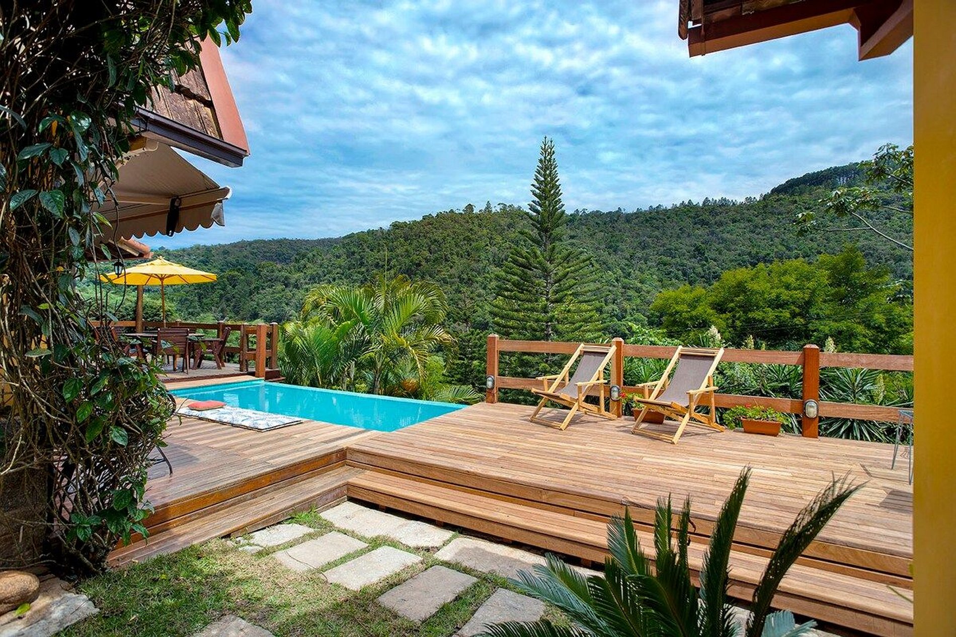 A cozinha é bem equipada, os quartos são confortáveis, a vista é muito bonita, tem bastante privacidade, a piscina realmente aquece e foi o ponto mais alto da estadia.