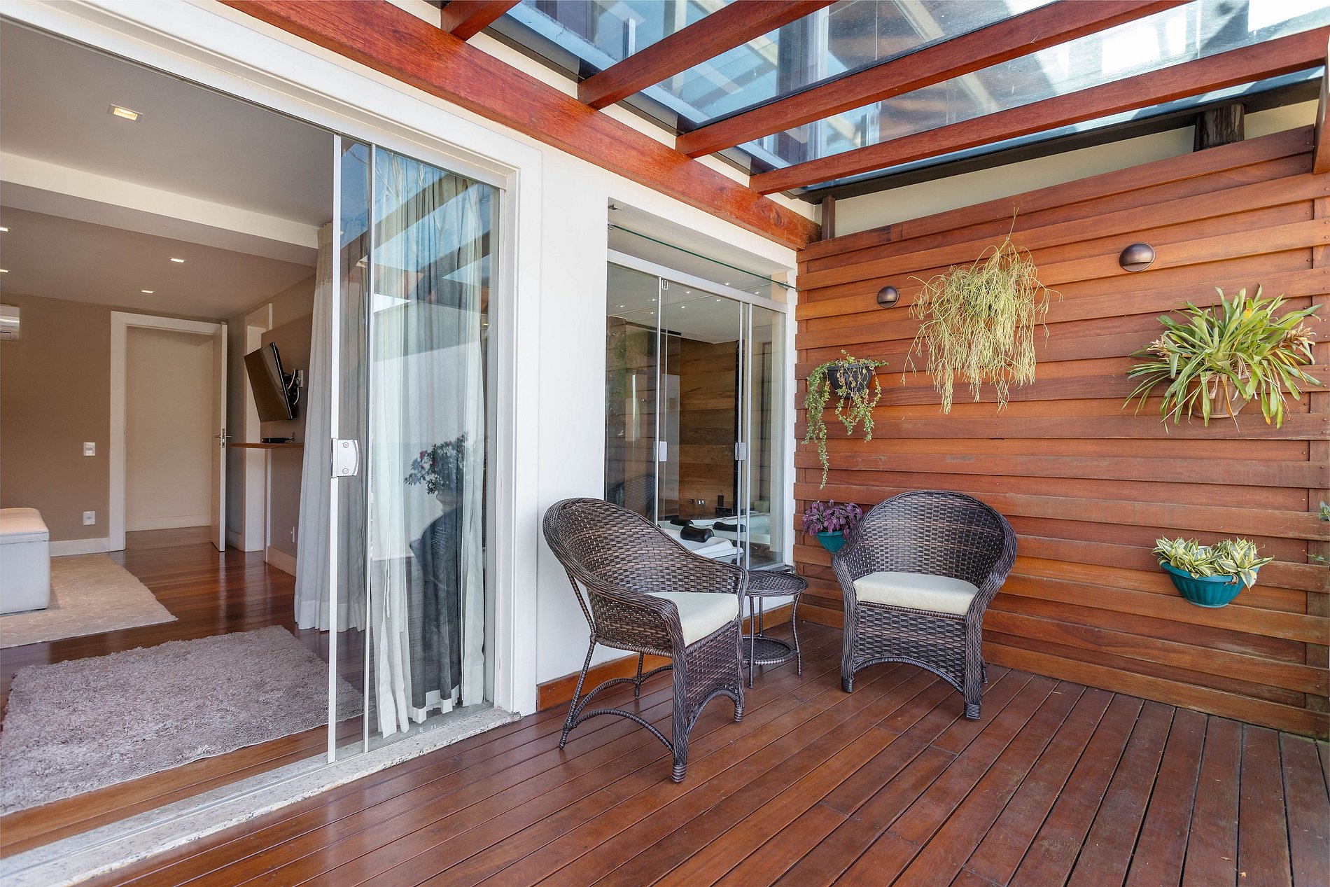 Segunda andar: Sala de TV, pergolado, jardim na cobertura, 3a suíte com A/C quente e frio, varanda e TV, 4a suíte com A/C quente e frio e varanda, área de serviço com banheiro.
