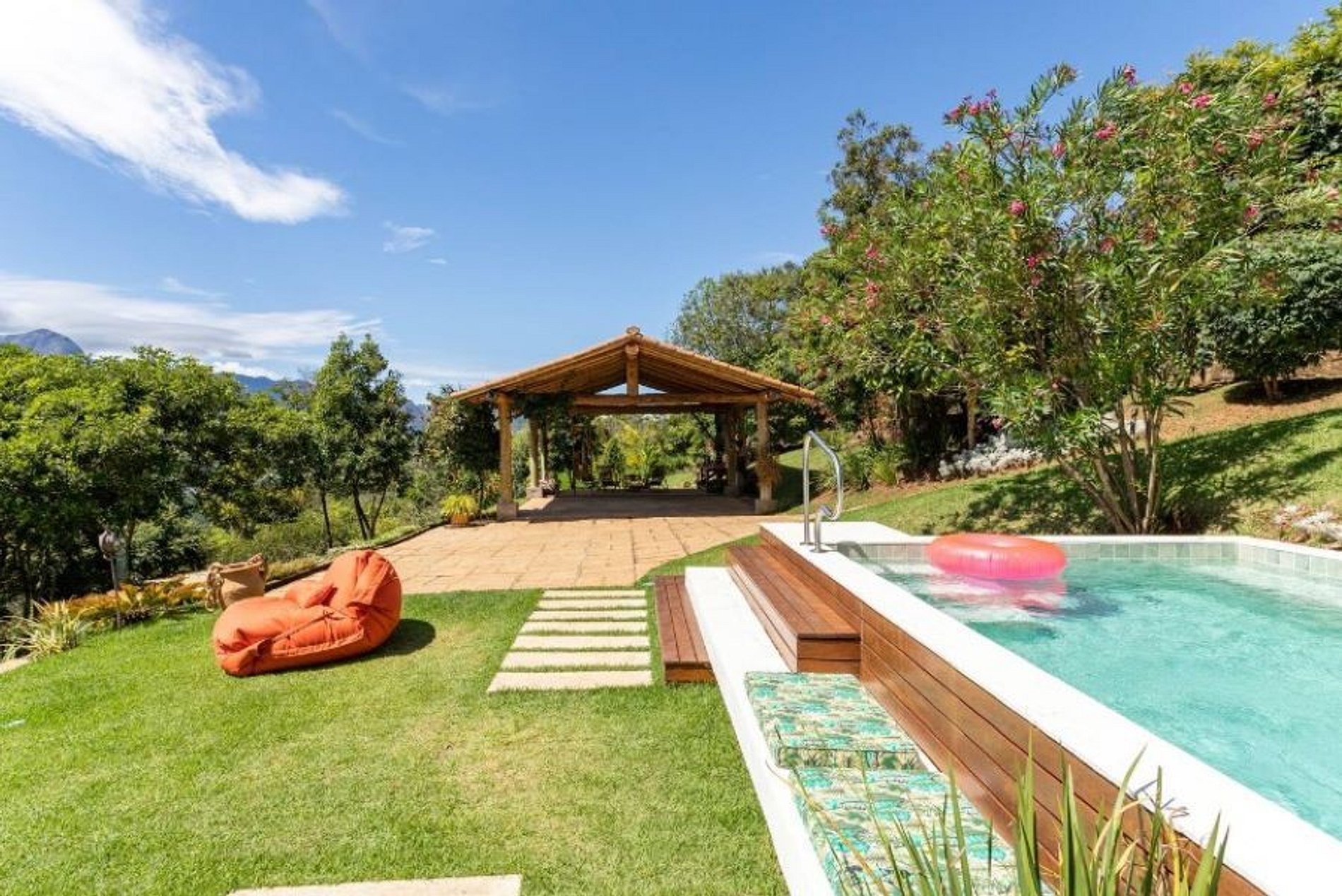 Casa muito boa. Bons lençóis, ótimo chuveiro, vista linda mesmo, cozinha completa, quartos com ar split quente e frio, sossego total. À noite o varal de luzes ao ar livre é muito agradável. E de dia a piscina e espaço de lazer são ótimos. A casa fica no topo de um morro e o acesso foi sossegado. A vista é espetacular.