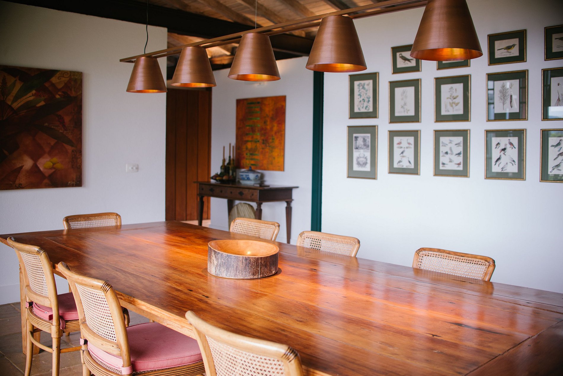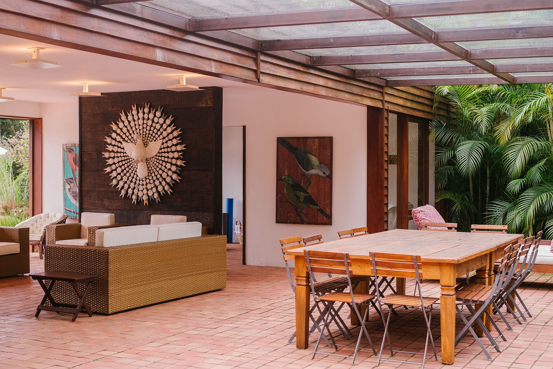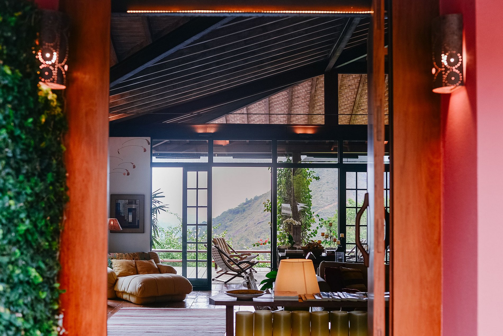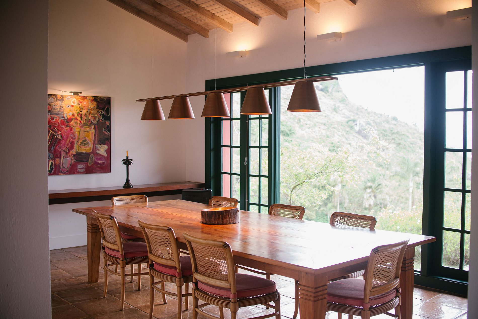 Chegar até à casa, abrir a porta e descobrir a incrível sala de estar com uma vista literalmente de tirar o fôlego é uma sensação única. A varanda é tão gostosa e aconchegante que não dá vontade de sair dali. A sala de jantar é ampla e tem uma grande janela para aproveitar a vista. A cozinha é completíssima, com geladeiras, freezer, adega climatizada e todos os utensílios, mas o charme dela é a mesa para café da manhã informal junto a um jardim reservado.