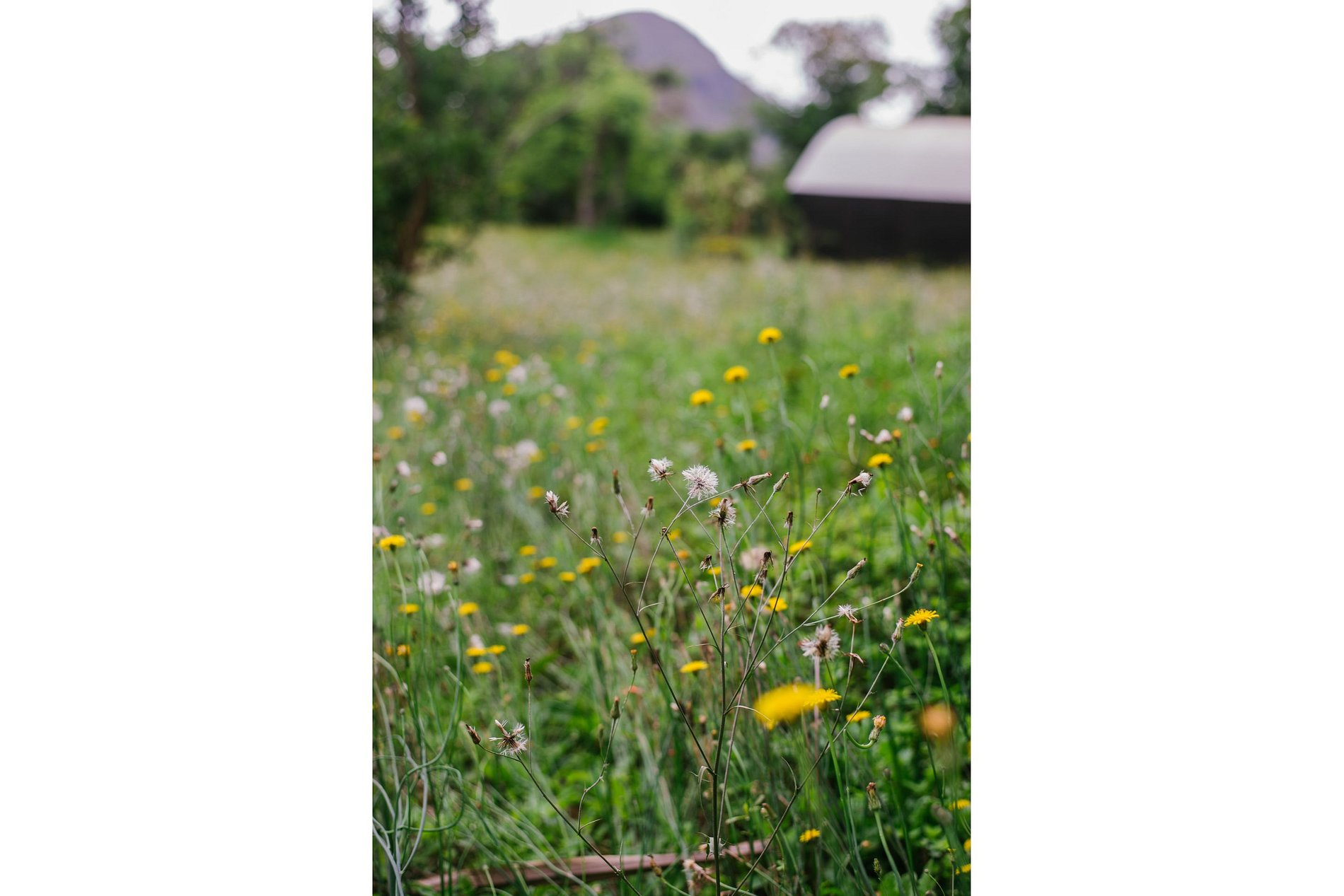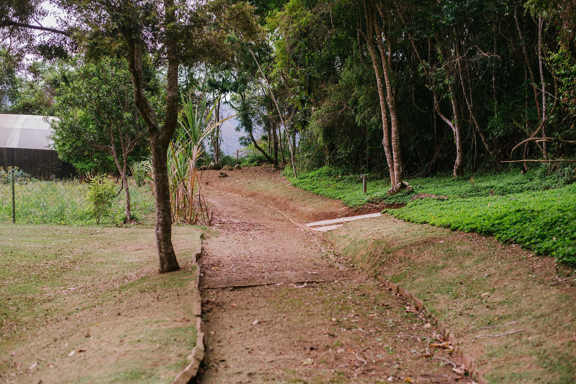 Agora desça um pouco mais pelo jardim e pelas árvores até o campo de futebol, espaço para vôlei, pista de caminhada e a estufa. Uma ótima área para relaxar e, quando em época, colher uma verdura fresca para o almoço ou jantar.